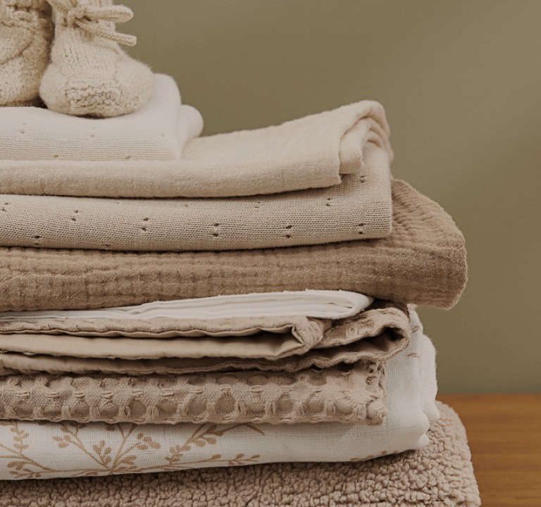 Unsere Produkte sind ein 100%iges Naturprodukt und bestehen hauptsächlich aus Baumwolle. Dies ist besonders sicher für Ihr Baby, da der Stoff atmungsaktiv ist.