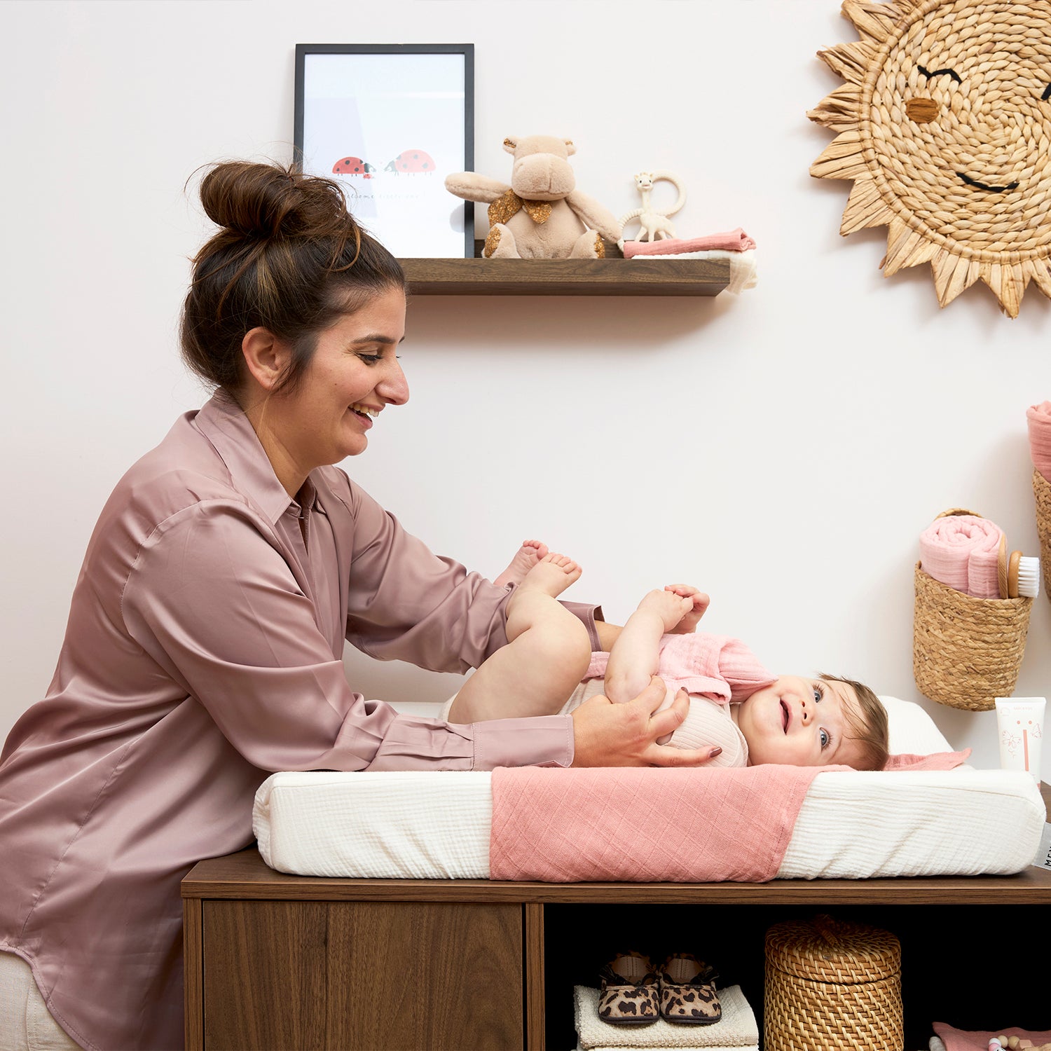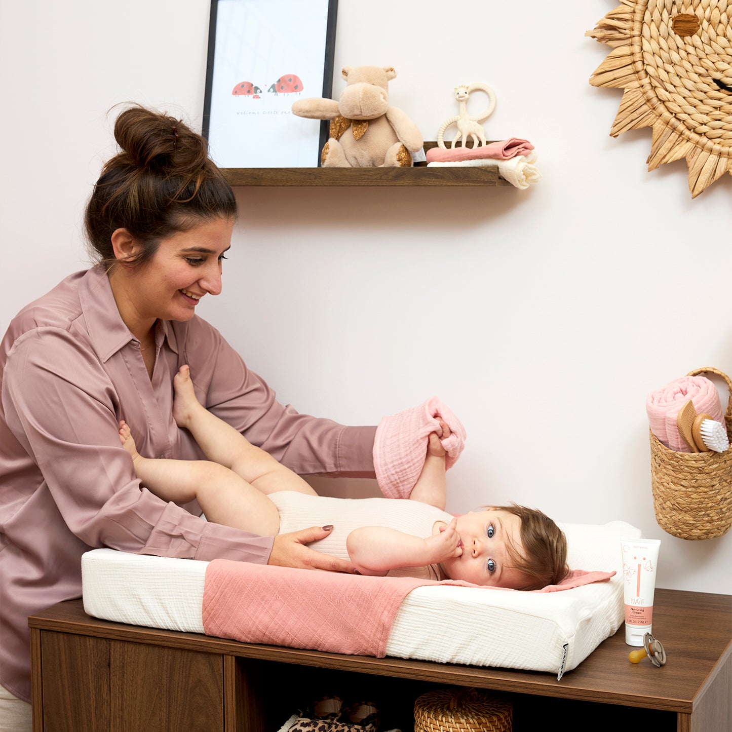 Tipp: lege eine Meyco Baby Musselin Mullwindel auf die Wickelauflage, damit du den Bezug nicht nach jedem kleinen Unfall direkt wieder waschen musst.