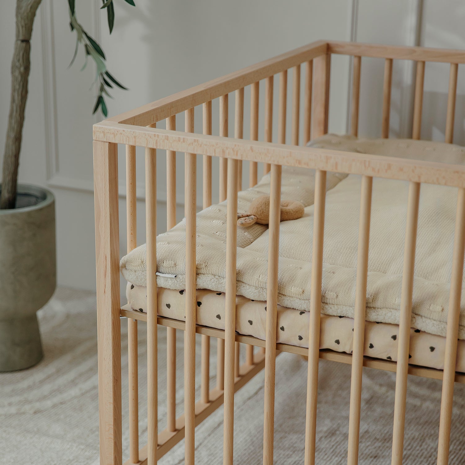Die Größe der Laufstalleinlage 77x97 cm ist auf die Innenmaße eines Standard-Laufstalls abgestimmt. Und natürlich kannst du die Decke auch als Spielmatte auf dem Boden oder im Garten verwenden.