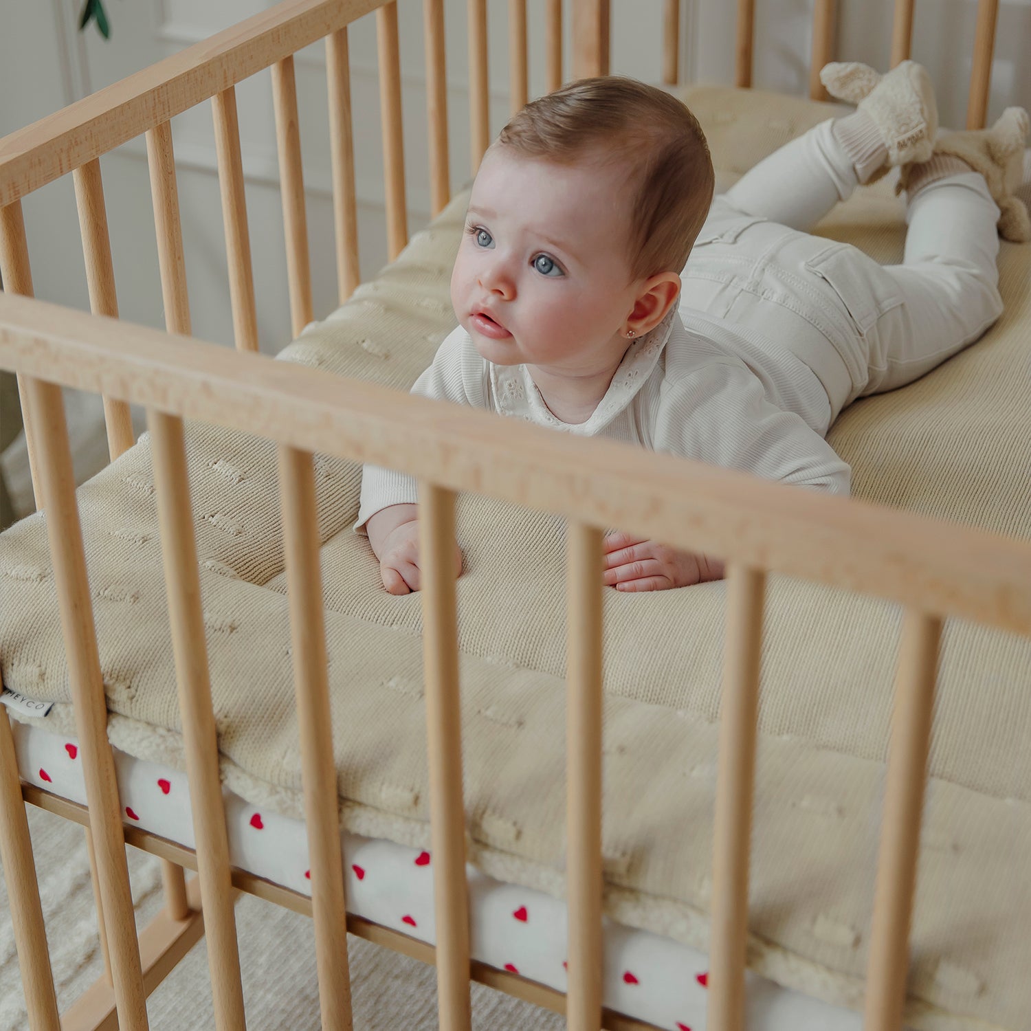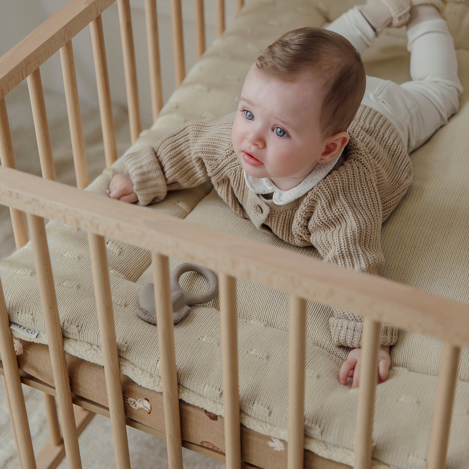 Suchst du eine schöne Laufstalleinlage, die zu deiner Inneneinrichtung passt? Schau dir dann diese Meyco Baby Laufgittereinlage Mini Knots an, denn diese Decke ist in vielen Farben erhältlich. Die mini 3D-Knoten verleihen der Einlage einen luxuriösen und modernen Look.