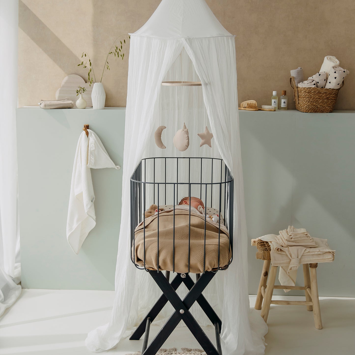 - Zwei Größen: Wiege (75x100 cm) und Kinderbett (100x150 cm)