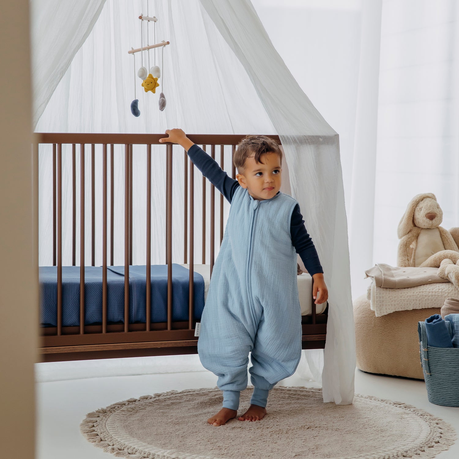 Die Meyco Baby Pure Decke besteht aus einer hochwertigen Mischung von 60 % Baumwolle und 40 % Polyester. Diese Kombination bietet das Beste aus beiden Welten: atmungsaktive Baumwolle für ein angenehmes Schlafklima und Polyester für zusätzliche Weichheit und Langlebigkeit. Mit einem TOG-Wert von 0.5 ist diese Decke für alle Jahreszeiten geeignet: warm genug, aber dennoch atmungsaktiv.