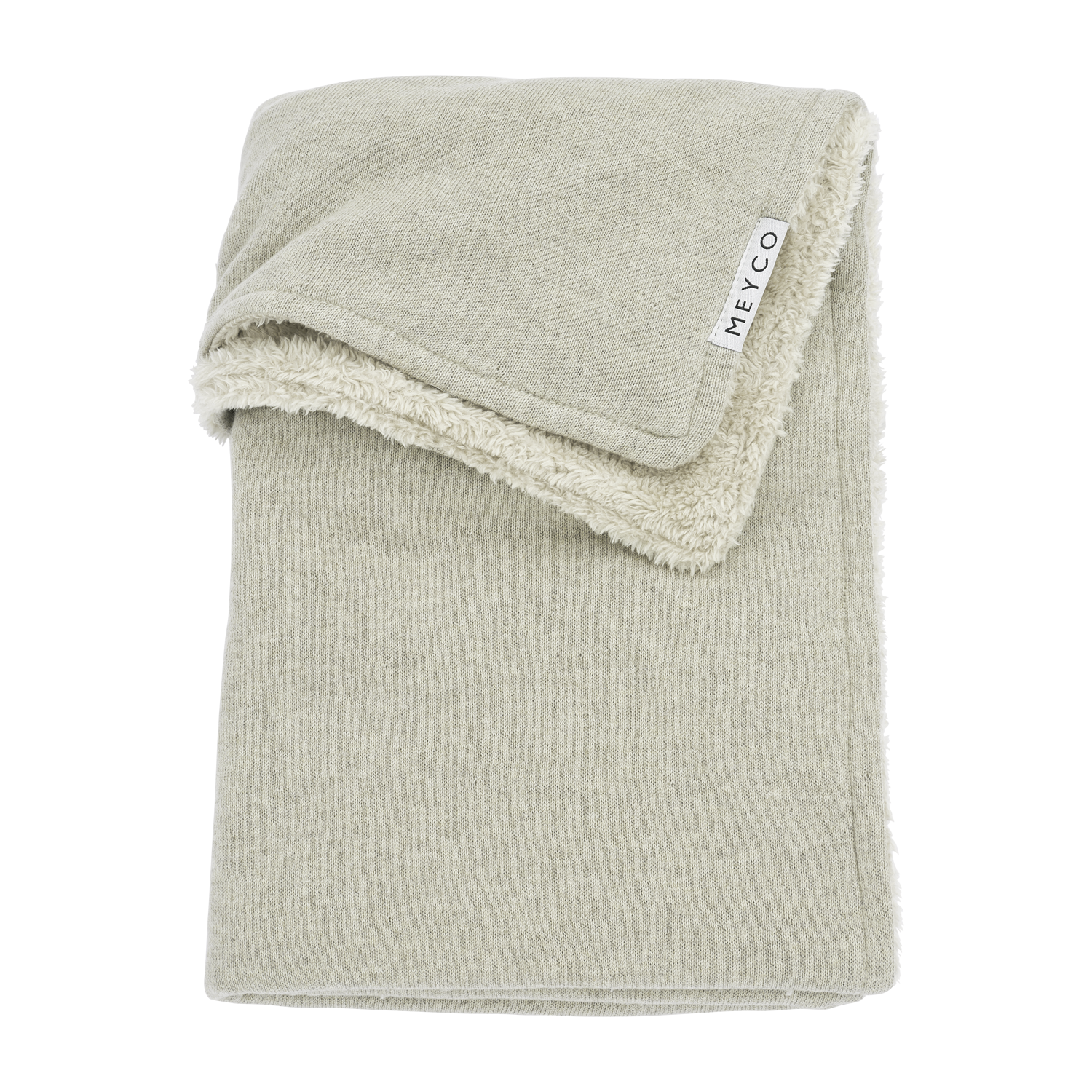 Das ist die Meyco Baby Babydecke Knit Basic Fleece. Eine Decke mit einem sehr hohen Kuschelfaktor. Denn eine Seite besteht aus 100 % Baumwolle und die andere Seite aus superweichem Fleece (100 % Polyester). Die zwei Lagen sorgen dafür, dass dein Kind das ganze Jahr über angenehm warm schlafen kann.