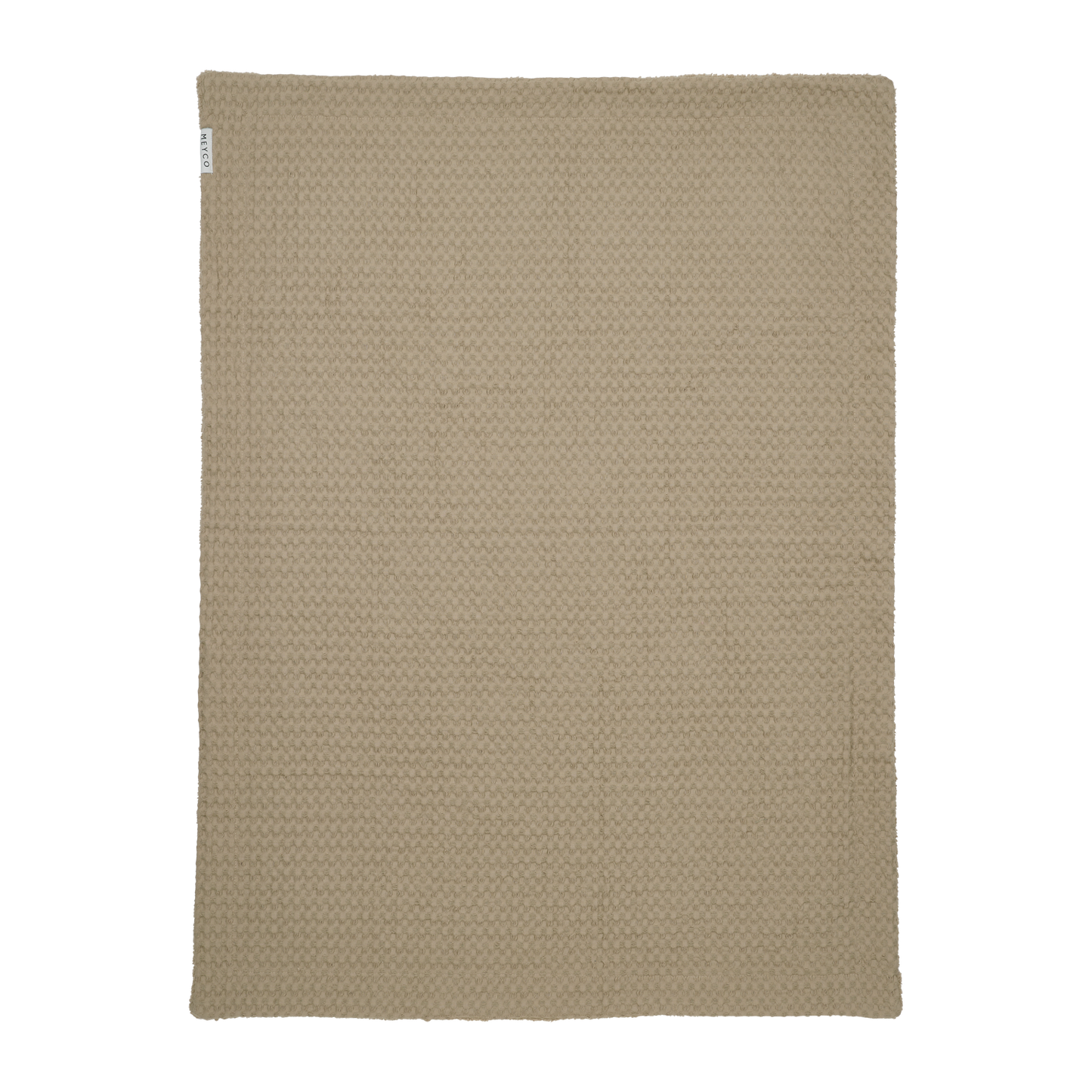 Die Vorderseite der Decke besteht aus 100 % Baumwoll- Waffelstruktur. Die Rückseite ist aus herrlich weichem Teddy-Fleece gefertigt und besteht zu 100 % aus Polyester. Die Decke hat einen TOG-Wert von 2,0. Je höher der TOG-Wert, desto wärmer.