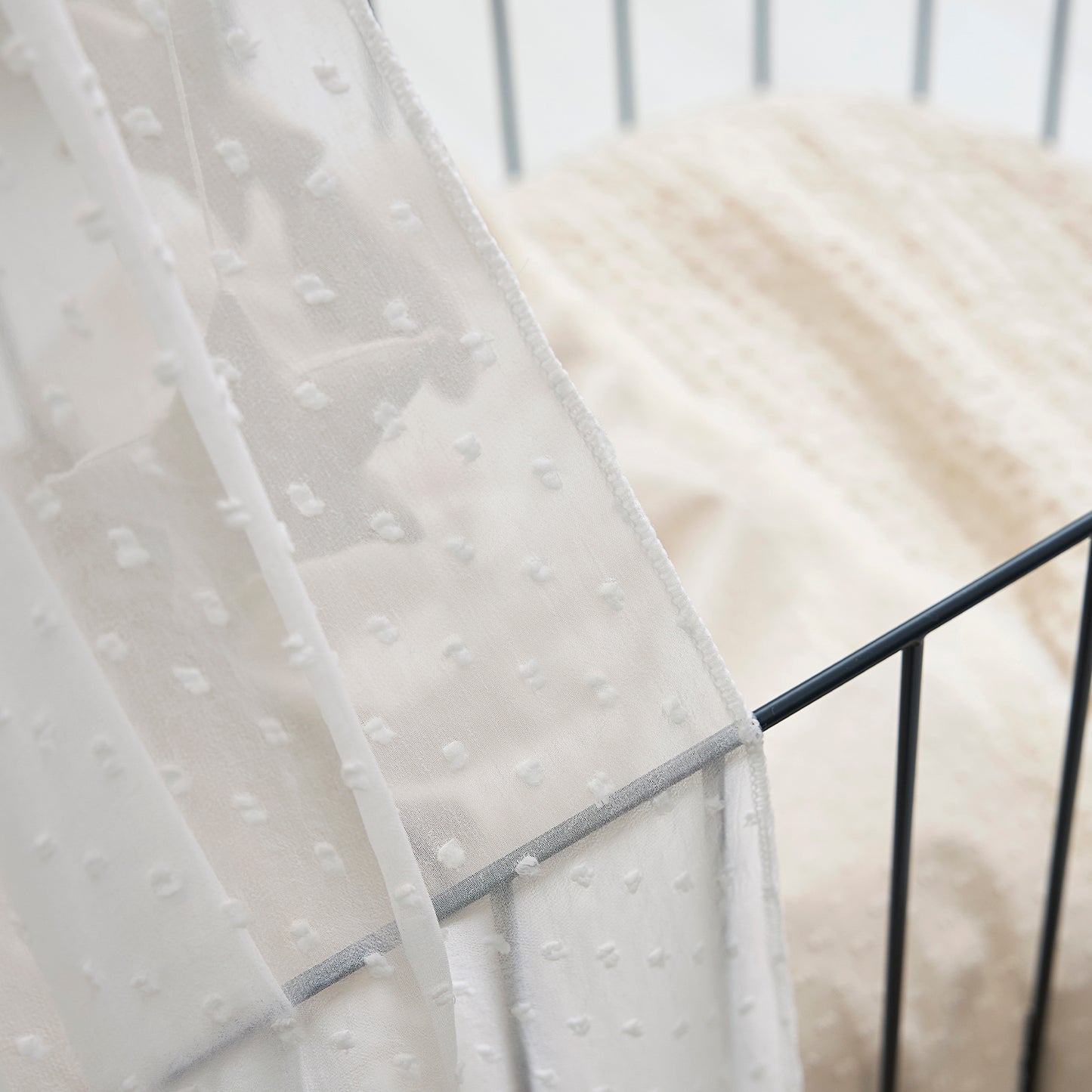 Dieser wunderschöne Baldachin Plume bringt eine schicke, klassische Atmosphäre in Ihr Kinderzimmer. Dank der dezenten, gestickten Punkte setzt der Baldachin einen eleganten, stimmungsvollen Akzent über dem Bett. Ein Baldachin gibt Ihrem Kind ein zusätzliches Gefühl der Sicherheit. Er macht sich natürlich nicht nur über einem Kinderbett, sondern auch über einem Kleinkindbett, Juniorbett oder Einzelbett gut. Die Moskitonetze und Schleier werden ohne Schirmstange geliefert.