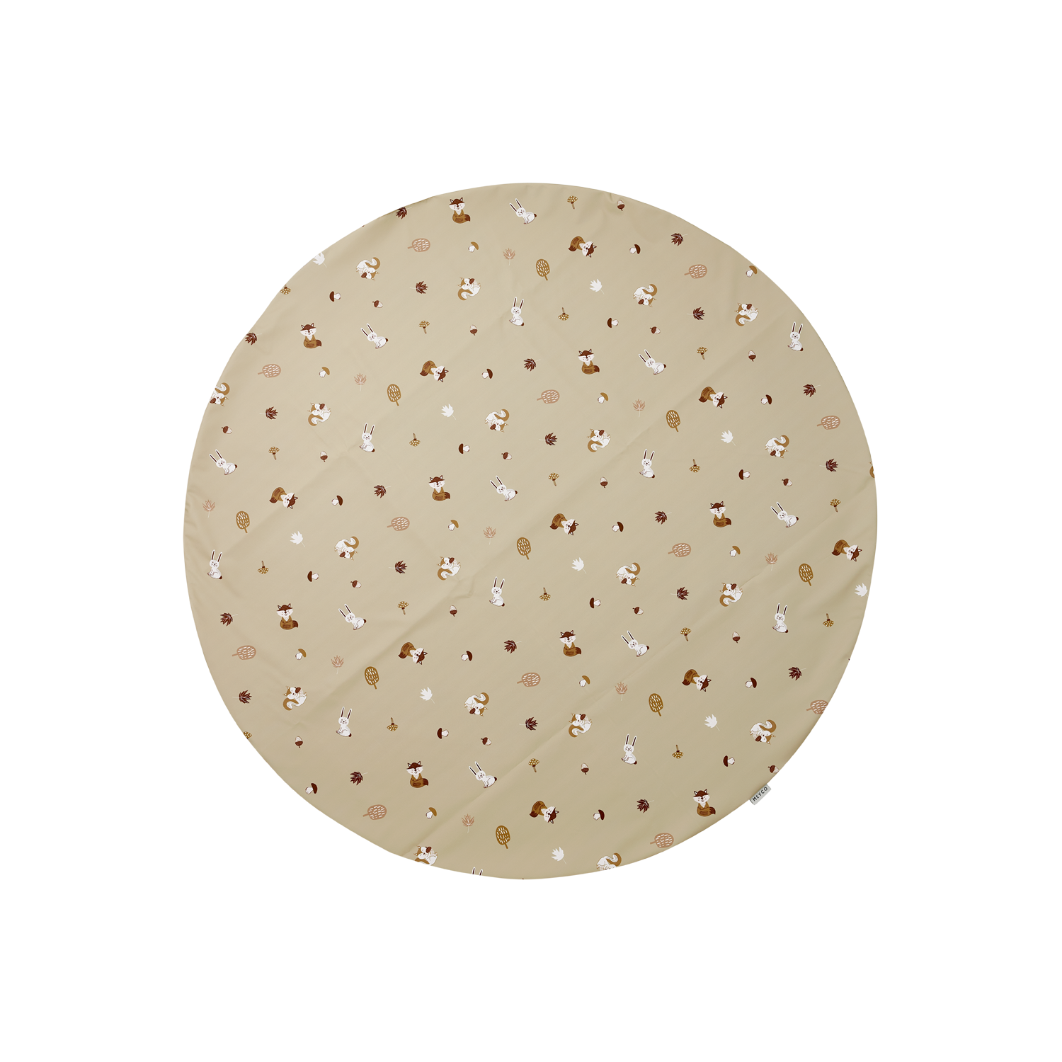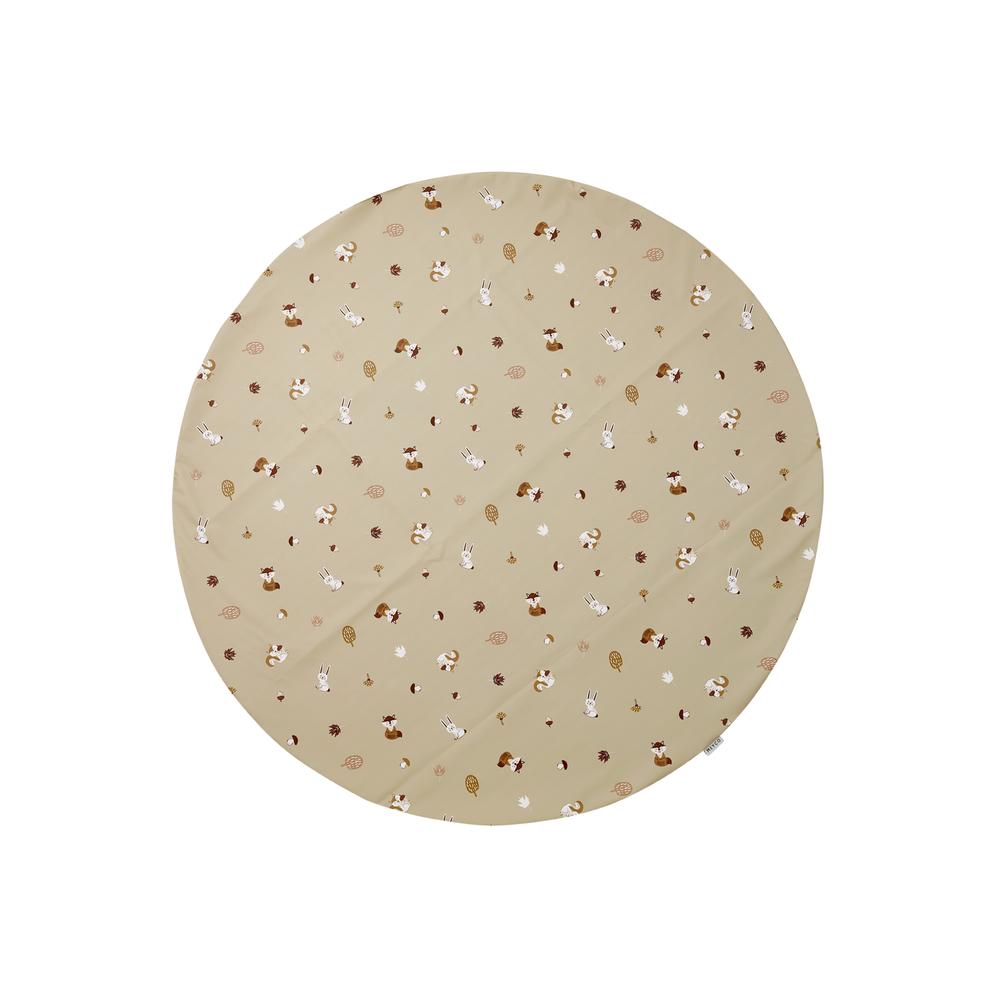 Die Matte hat einen Durchmesser von 110 cm. Die Oberseite der Matte besteht aus 100 % Polyurethan und die rutschfeste Unterseite aus 100 % Polyester. Dadurch ist die Matte wasserdicht und leicht zu reinigen.