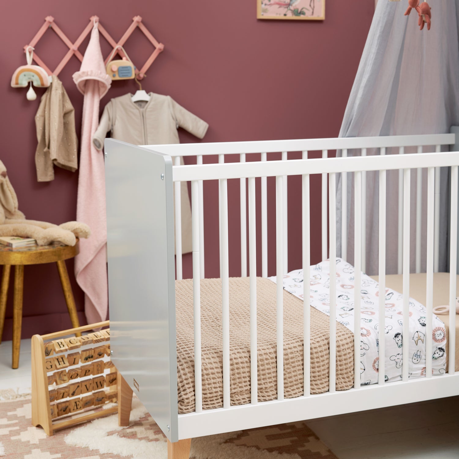 Die Laken sind aus 100 % Baumwolle, die sich auf der zarten Haut deines Babys weich anfühlt und für eine gute Atmungsaktivität sorgt. Dieses Set besteht aus zwei Laken, sodass du im Falle eines kleinen Unglücks sofort ein frisches zur Hand hast.