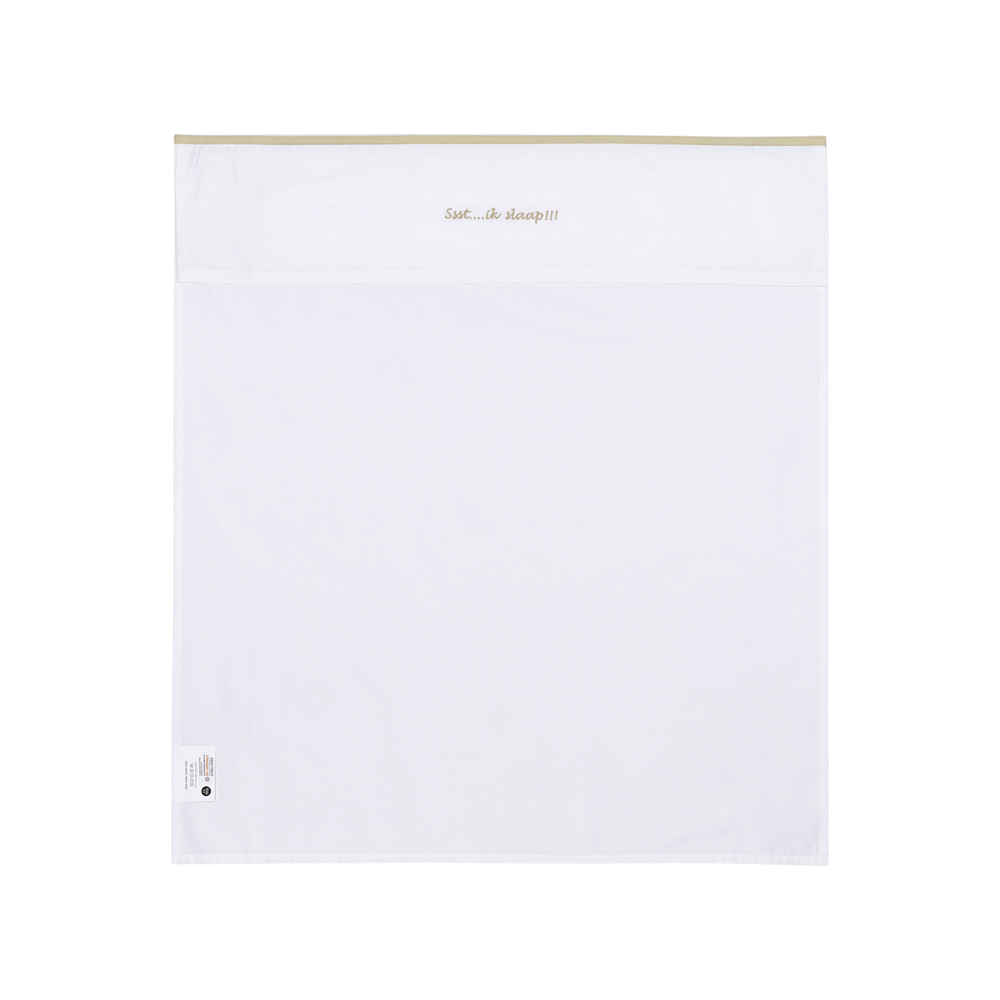 Lass dein kleines Wunderkind unter diesem Meyco Baby-Bettlaken bequem einschlafen. Dank der 100%-igen Baumwollqualität fühlt sich das Laken angenehm weich an. Das natürliche Material ist atmungsaktiv und absorbiert die Feuchtigkeit perfekt. Dein kleiner Schatz wird ein trockenes und angenehm frisches Schlafklima genießen. Das weiße Laken hat eine farbige Borte am oberen Rand und mit gesticktem Streifen .