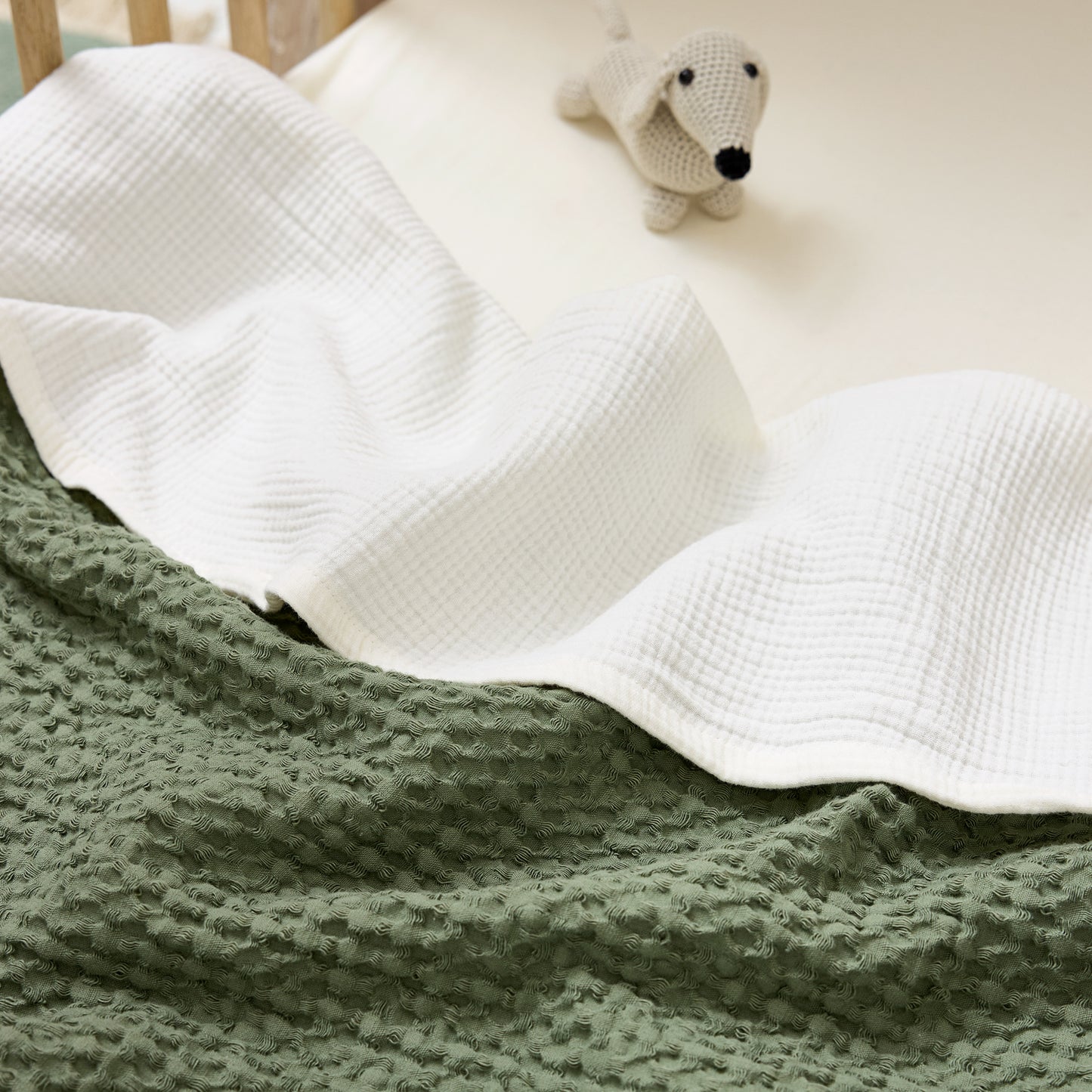 - Erhältlich in zwei Größen: für Wiege/Kinderwagen und Kinderbett