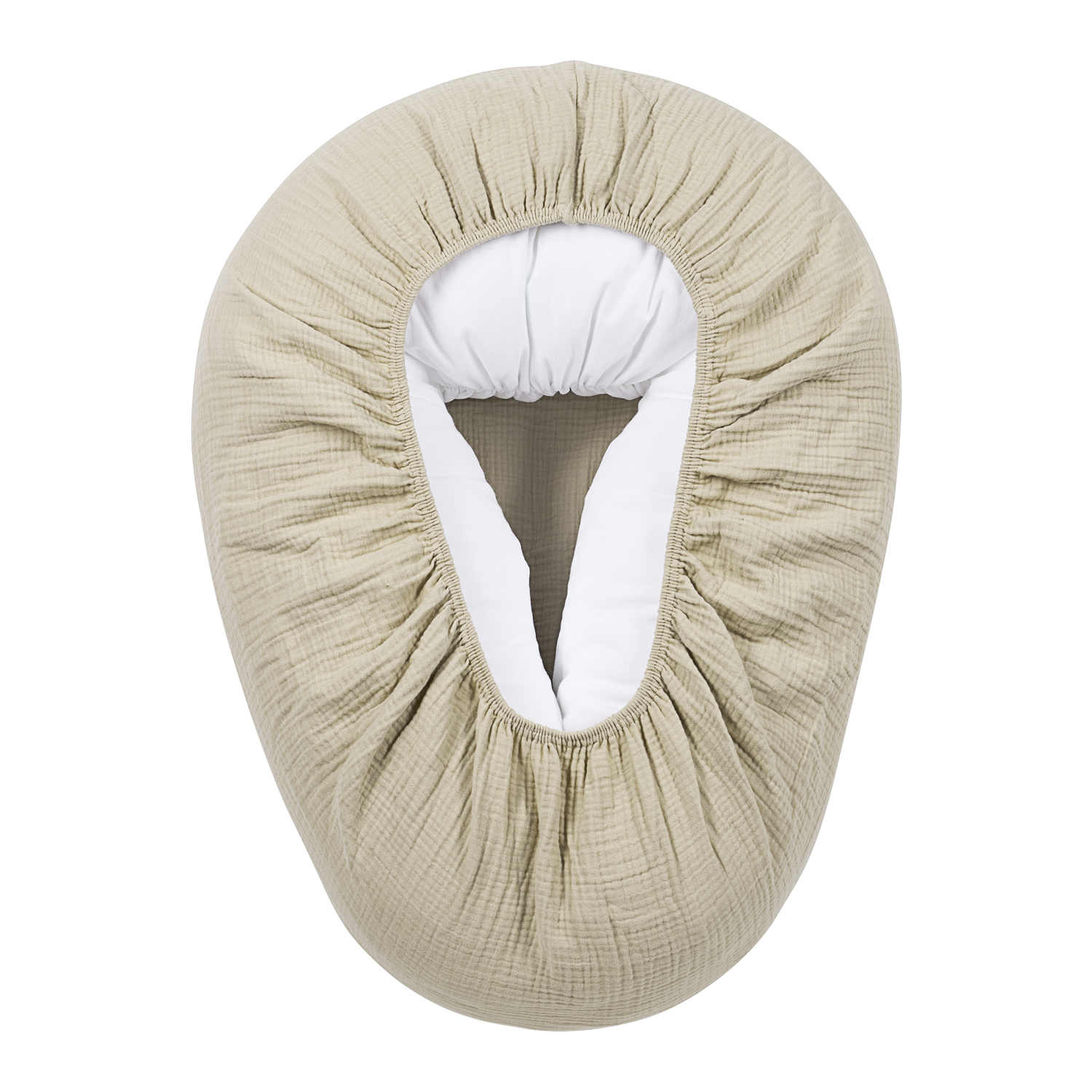 Der Bezug ist aus weichem, vorgewaschenem, hydrophilem Stoff hergestellt. Dank des elastischen Bandes an der Unterseite können Sie diesen Bezug schnell um Ihr Stillkissen legen. Verschmutzt? Kein Problem! Ziehen Sie ihn einfach ab und waschen Sie ihn.