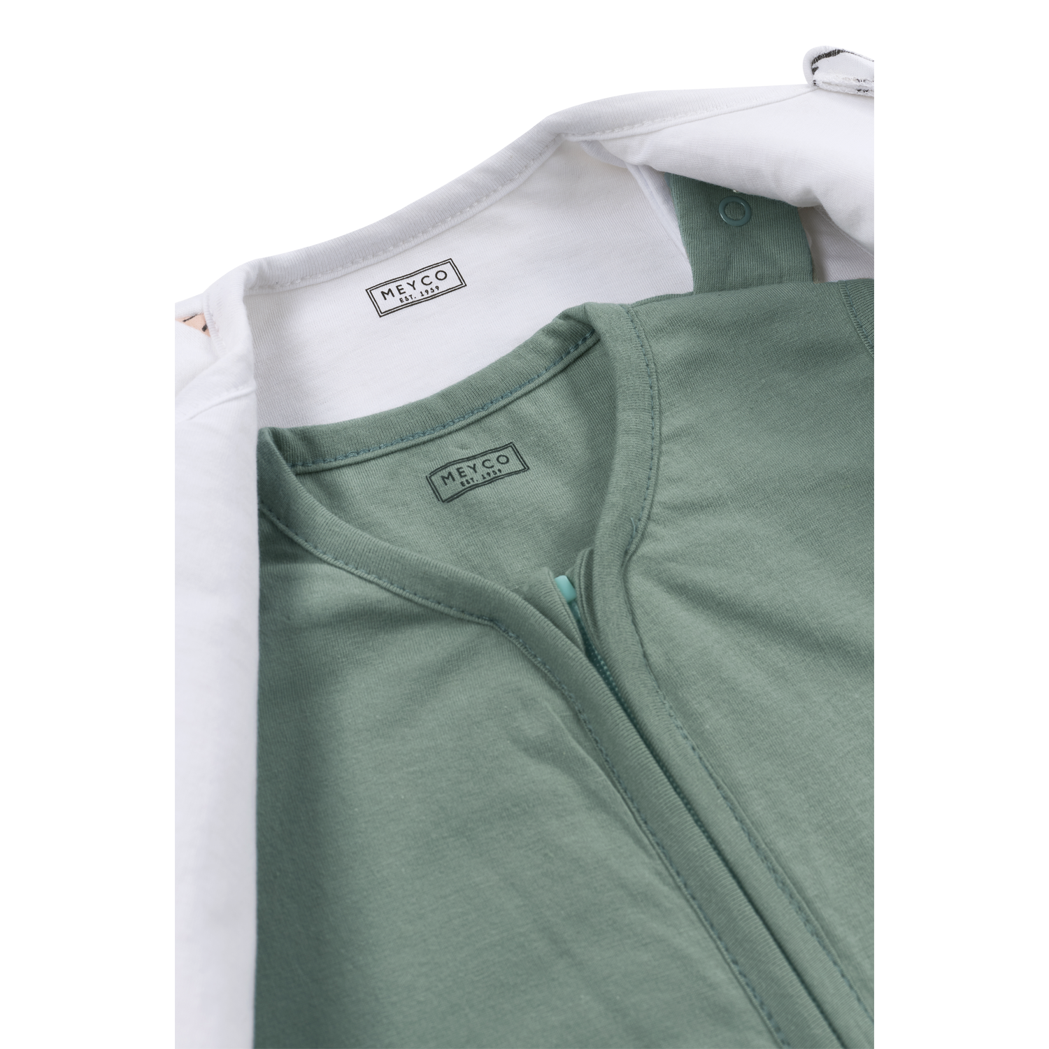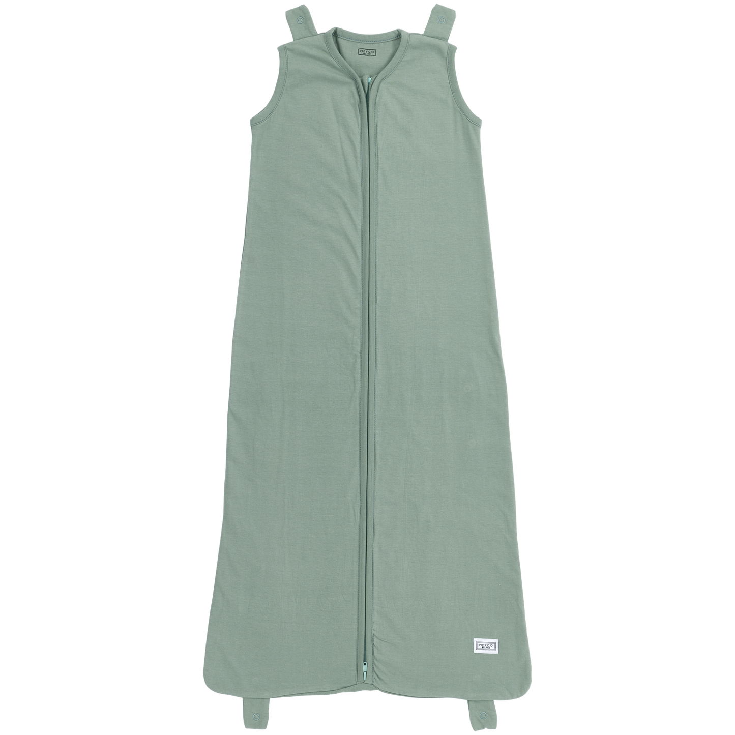 Der Innenschlafsack hat einen TOG-Wert von 0,5 und der Außenschlafsack mit ärmeln hat einen TOG-Wert von 2,5. Der Außenschlafsack ohne ärmel hat einen TOG-Wert von 2,0.
