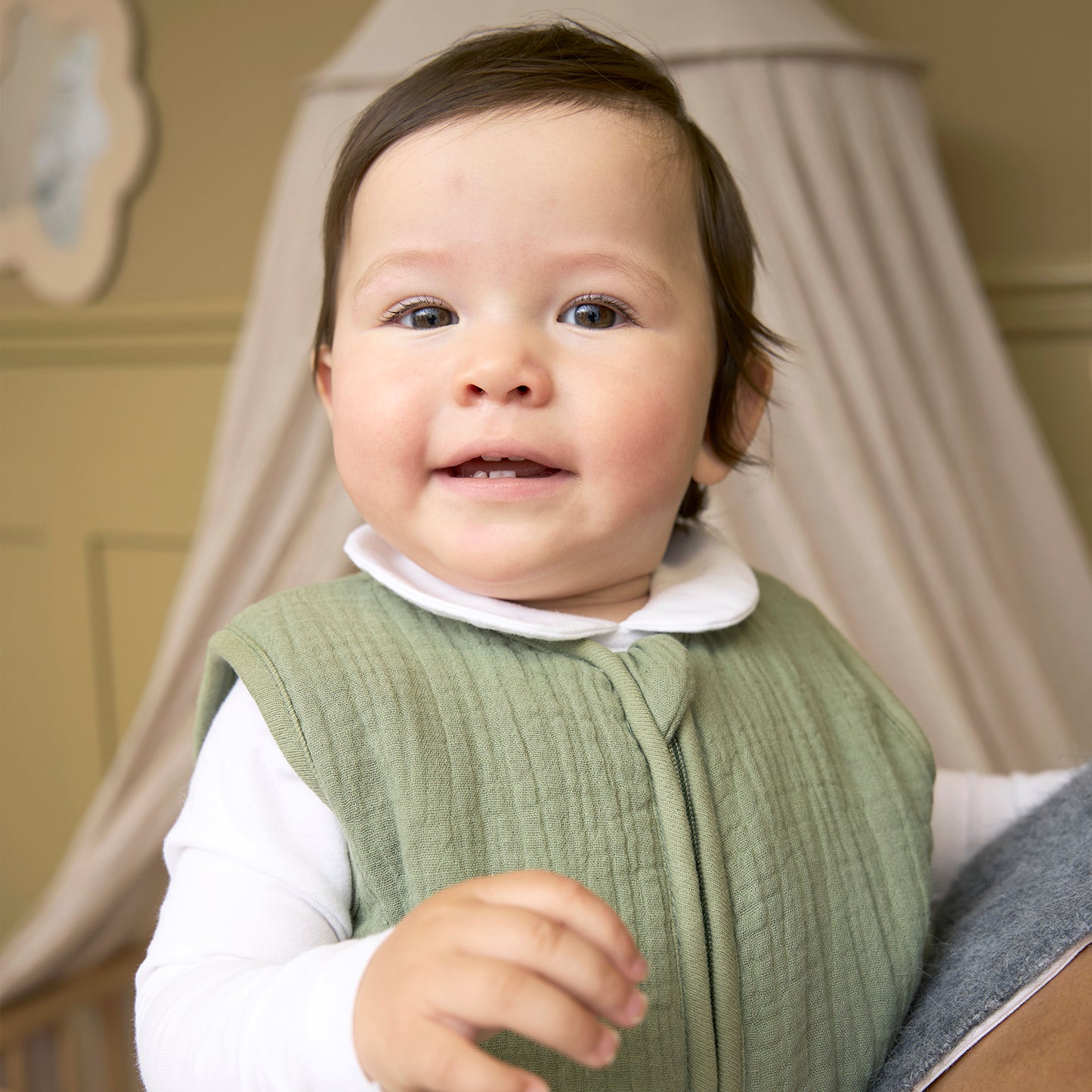 Der Schlafsack ist aus 100% weichem vorgewaschenem Mullbaumwollstoff gefertigt und mit 100% Polyester gefüttert. Mit einem TOG-Wert von 2,0 ist er ideal für Frühling und Herbst sowie für kältere Wintertage und -nächte. Die atmungsaktive Baumwolle sorgt für eine hervorragende Feuchtigkeitsregulierung und trocknet sehr schnell, sodass das Schlafklima deines Babys immer angenehm bleibt. Die feine, sichere Passform liegt gut an Hals und Ärmchen an, sodass dein Baby bequem und sicher schlafen kann.