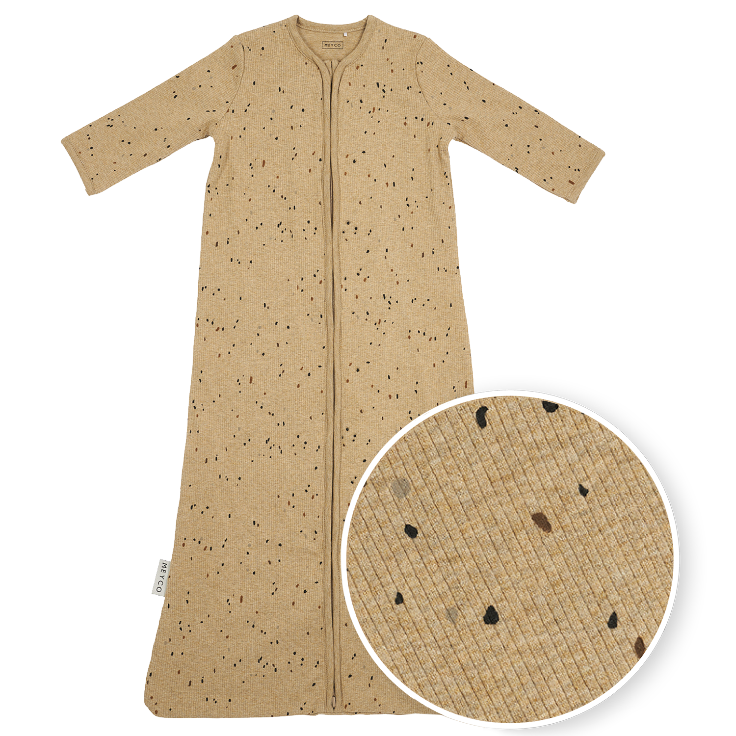 Ist dieser Meyco Baby-Schlafsack mit ärmeln nicht unglaublich süß? Dein Kleines kann in diesem Schlafsack wunderbar einschlafen und sich ins Land der Träume begeben. Dank der langen ärmel ist dieser Schlafsack sehr gut für den Herbst und Frühling sowie milde Wintertage geeignet. Der trendige Rippenstoff sorgt für einen hübschen Twist und ist wunderbar weich und dehnbar. Der Schlafsack ist in verschiedenen Melange-Farben erhältlich und mit dem Mini-Spot-Aufdruck versehen. Der Print ist minimalistisch, verleiht dem Schlafsack aber dennoch einen sehr schicken Look und lässt sich leicht mit deiner kompletten Babyausstattung kombinieren.