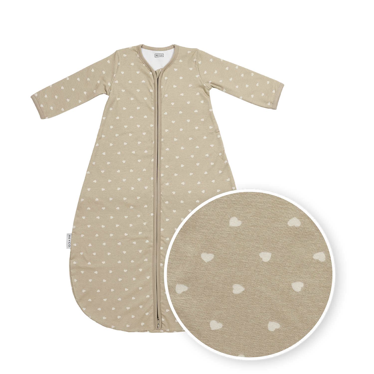 Der Schlafsack besteht aus 100 % Baumwolle in weicher Jersey-Qualität. Der Stoff ist besonders weich, atmungsaktiv und leicht dehnbar. Der Schlafsack hat einen TOG-Wert von 1.0. Je höher der TOG-Wert, desto wärmer der Schlafsack.