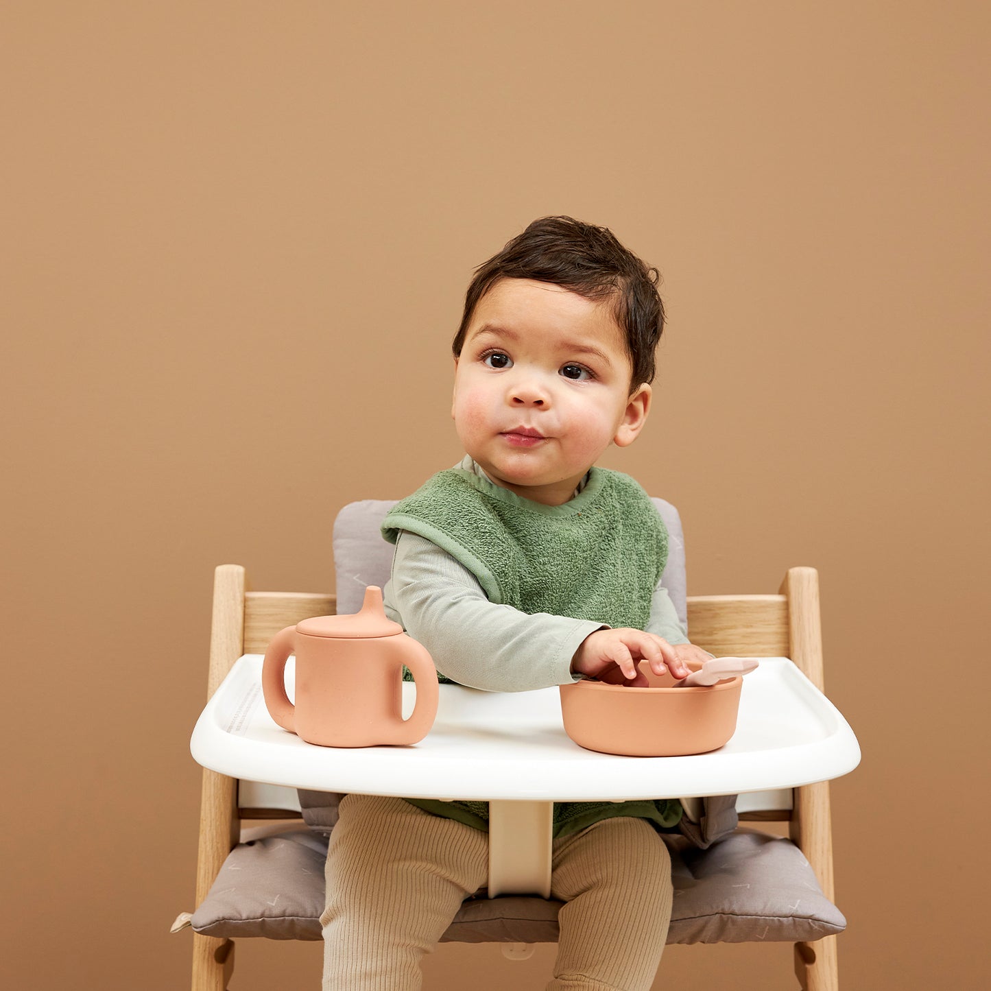 Das Lätzchen besteht aus 100 % Baumwollfrottee, das Feuchtigkeit gut aufnimmt und schnell trocknet. Dank des Klettverschlusses lässt es sich leicht an- und ausziehen und ist für mehrere Altersgruppen geeignet. Das Set besteht aus 3 Frottee-Lätzchen und lässt sich gut mit der kompletten Meyco Baby Kollektion kombinieren.