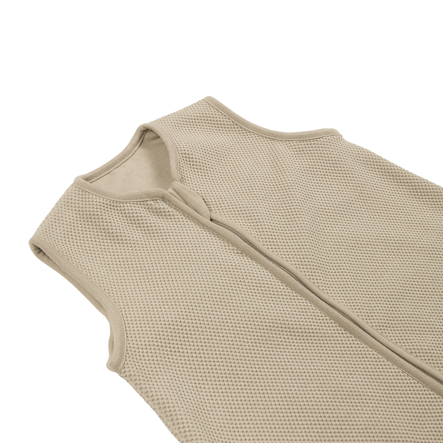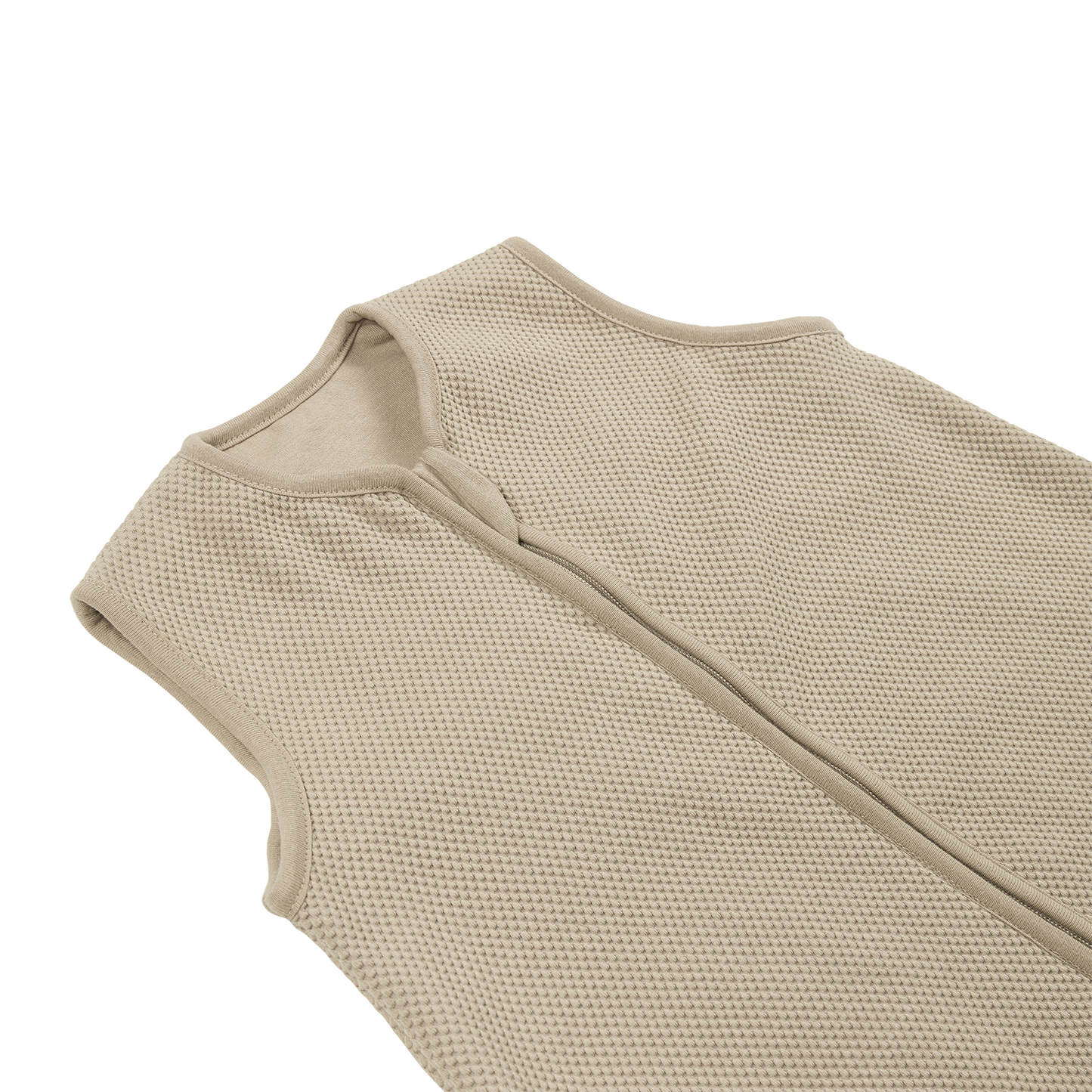 The full-length YKK zipper closes from top to bottom, so the pull tab ends at the bottom. This prevents your child from pulling the zipper down by themselves and ensures the neck opening always fits properly. Your baby cannot slip down inside the jumper, keeping the play and sleep environment safe and comfortable. In addition, the pull tab stays away from your child’s head, providing extra safety during sleep.