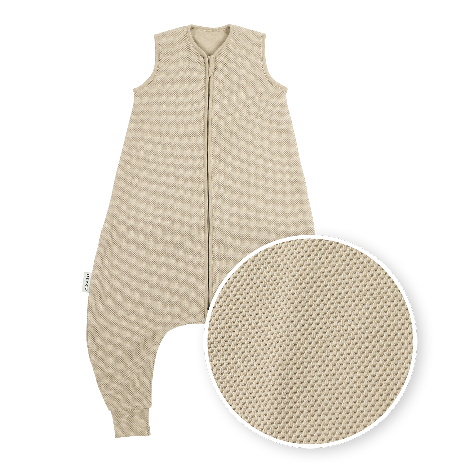 The sleeping bag with legs is unlined and made from a soft double-layer fabric: the inner layer is 100% cotton jersey, and the outer layer consists of 58% cotton, 39% polyester, and 3% elastane. With a TOG rating of 1.0, the jumper is ideal for spring and autumn nights. The breathable material regulates moisture exceptionally well and provides a comfortable sleeping climate, allowing your little one to sleep comfortably without getting too warm or too cold. Thanks to the safe fit that fits well around the neck and arms, your baby can move freely while still sleeping safely.