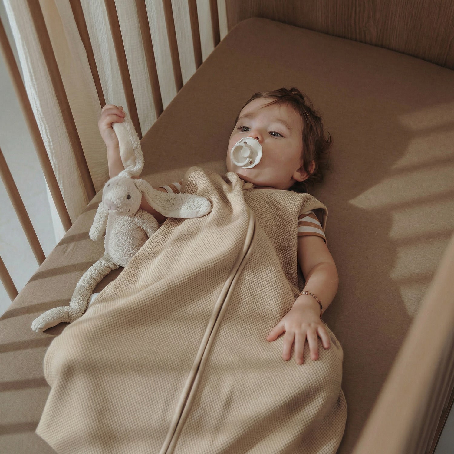 Alle unsere Schlafsäcke wurden umfangreich getestet und entsprechen der europäischen Sicherheitsnorm EN 16781. Der YKK-Reißverschluss über die gesamte Länge entspricht ebenfalls der europäischen Norm und schließt von oben nach unten, sodass der Zipper unten endet. Dies verhindert, dass dein Kind den Reißverschluss selbst öffnen kann, und sorgt dafür, dass die Halsöffnung stets gut anliegt. So kann dein Baby nicht in den Schlafsack rutschen und die Schlafumgebung bleibt sicher und komfortabel. Außerdem befindet sich der Zipper nicht in der Nähe des Köpfchens, was zusätzliche Sicherheit beim Schlafen bietet.