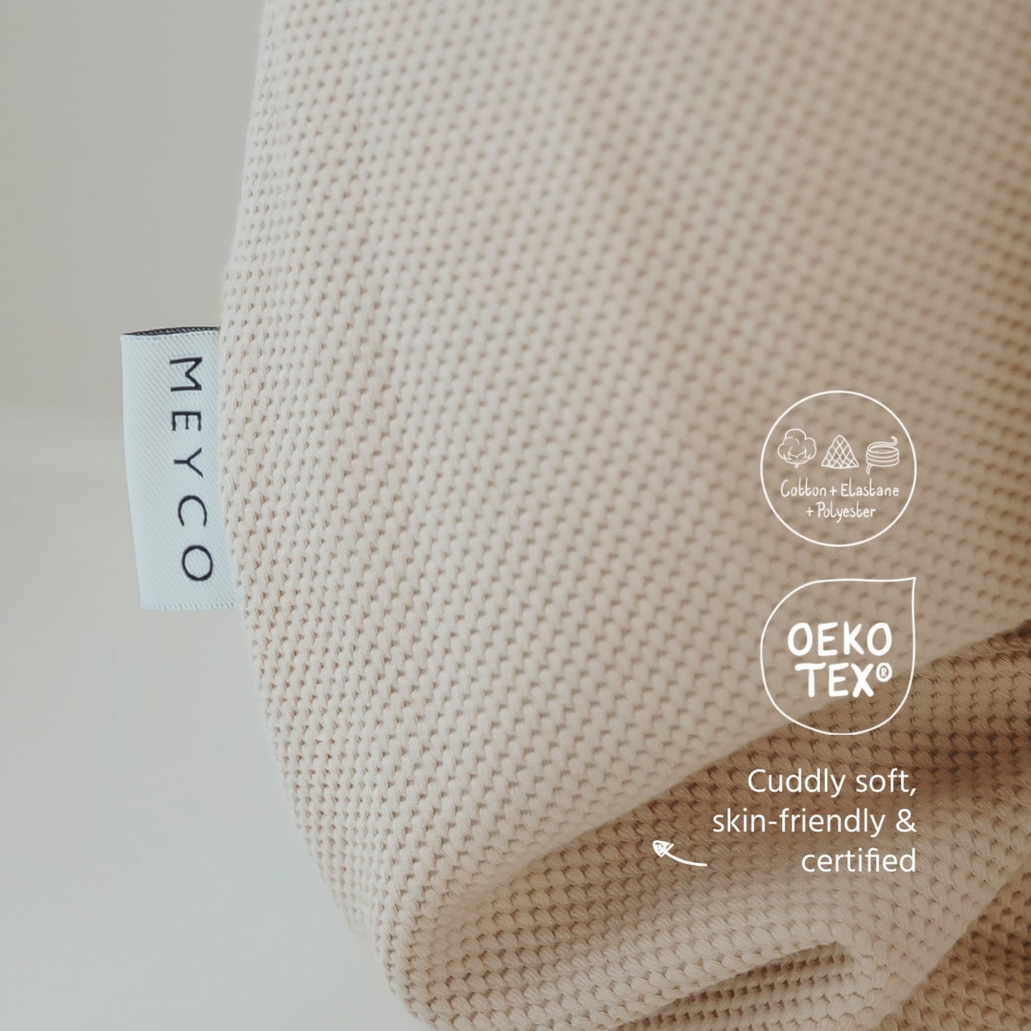 - Doppellagiger Stoff: Innenseite aus 100% Baumwoll-Jersey, Außenseite aus 58% Baumwolle, 38% Polyester, 3% Elasthan