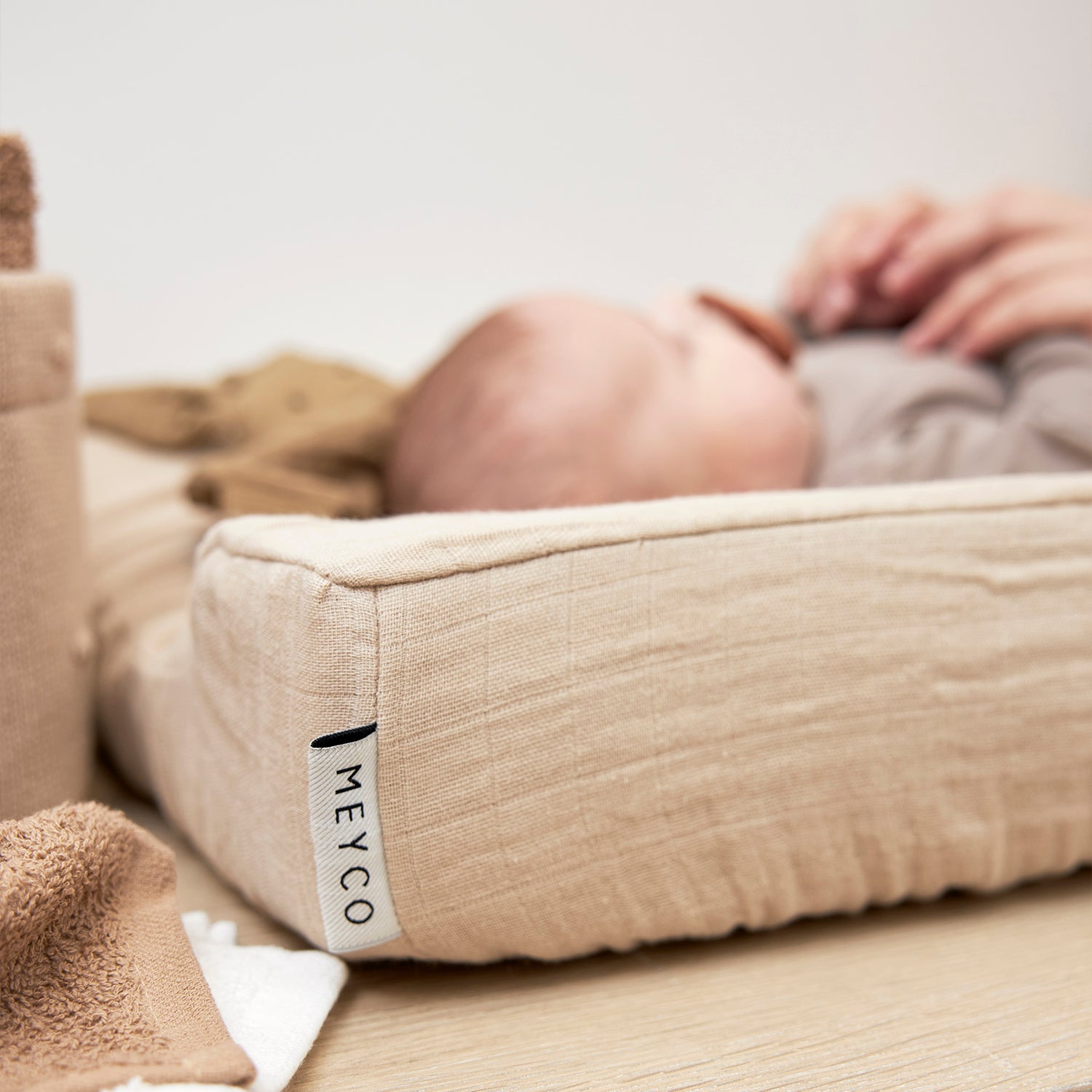 Tip! Place a Meyco Baby muslin square on the changing mat, so you don't have to wash the cover after every accident.