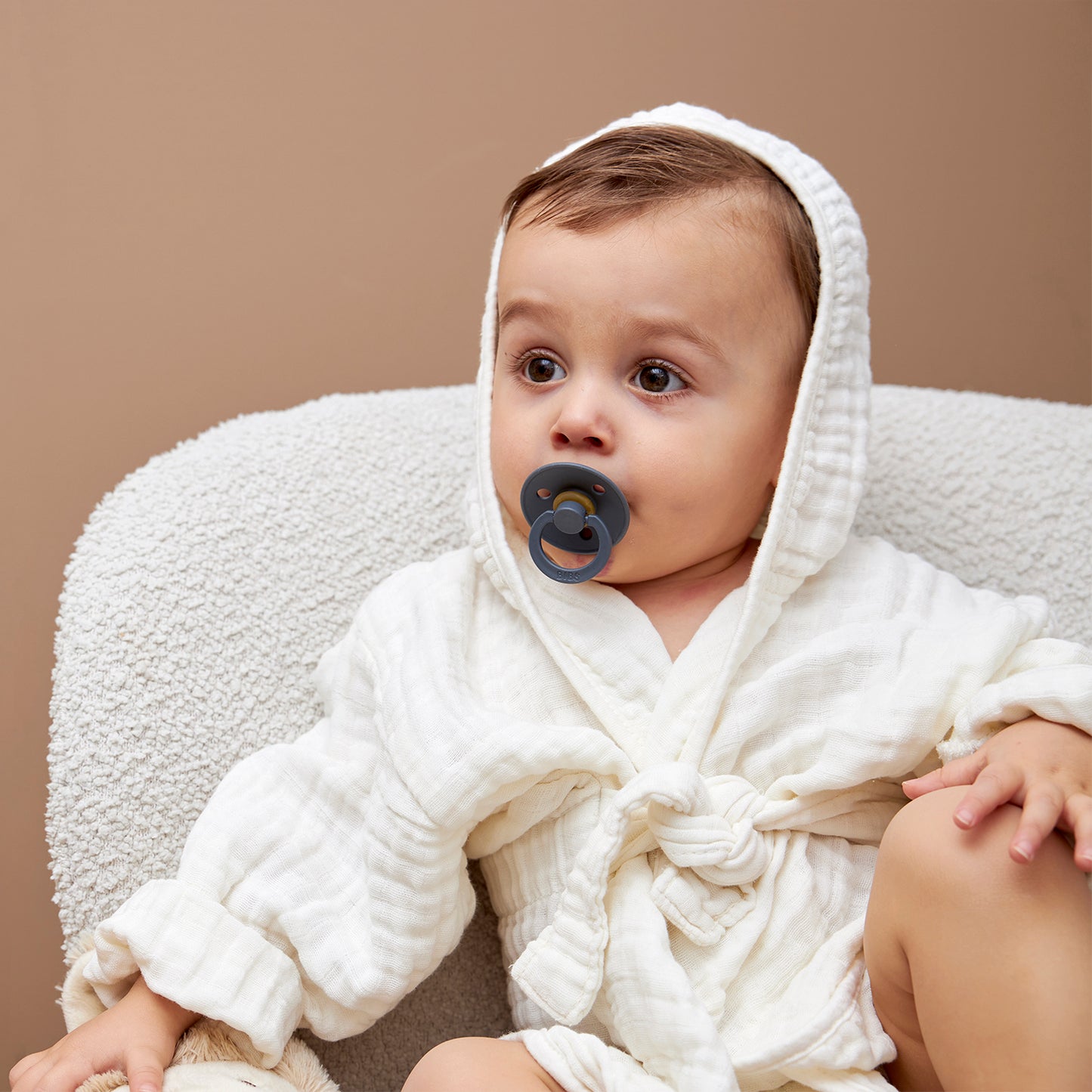The Meyco Baby pre-washed muslin bathrobe is comfortable and super soft for your baby's delicate skin. After swimming or bathing, wrap your baby up nice and warm and soft! This bathrobe is made of pre-washed muslin, which makes it very soft, absorbs moisture super well and also dries quickly.