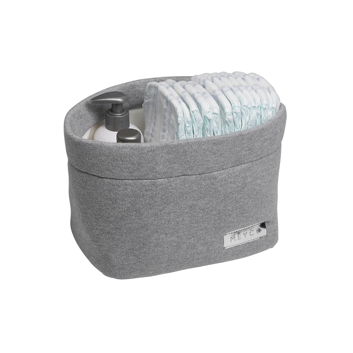 Store your child's care products or toys in style in these knitted baskets. The baskets are available in two sizes, are beautifully finished and the washable inside makes it no problem if a bottle leaks. Combine the baskets with the other items in the collection and create a dream room for your baby.