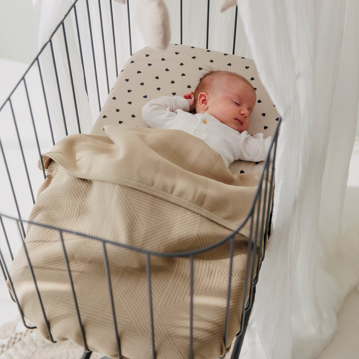 The Meyco Baby Pure blanket is made from a high-quality mix of 60% cotton and 40% polyester. This combination offers the best of both worlds: breathable cotton for a pleasant sleeping environment and polyester for added softness and durability. With a TOG value of 0.5, this blanket is suitable for all seasons: warm enough, yet still breathable.