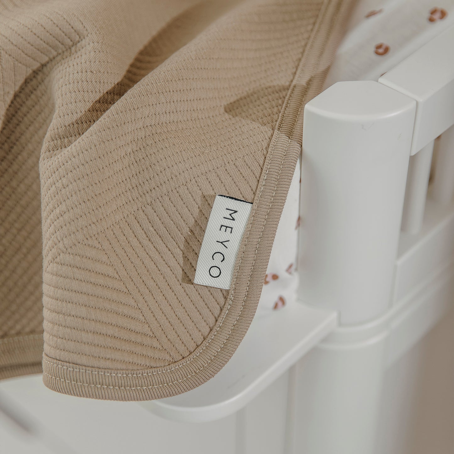 The subtle herringbone pattern gives the blanket a playful twist without sacrificing luxury. Will you choose indigo, taupe, or rose? Whichever color you choose, it will perfectly match the rest of the Meyco Baby collection.