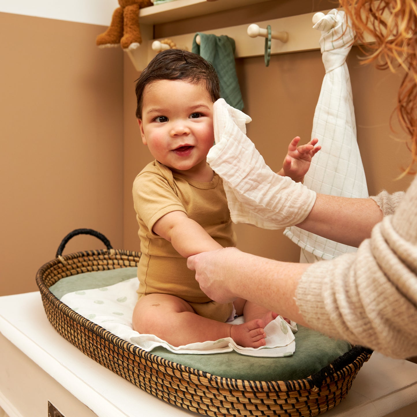 The versatile towels, made of 100% pre-washed muslin cotton, are the perfect solution for all everyday moments. The muslin cotton dries quickly and absorbs moisture well, allowing you to pat your little one dry in even the smallest creases. The pre-washed fabric feels extra soft, which is exactly what delicate baby skin needs.