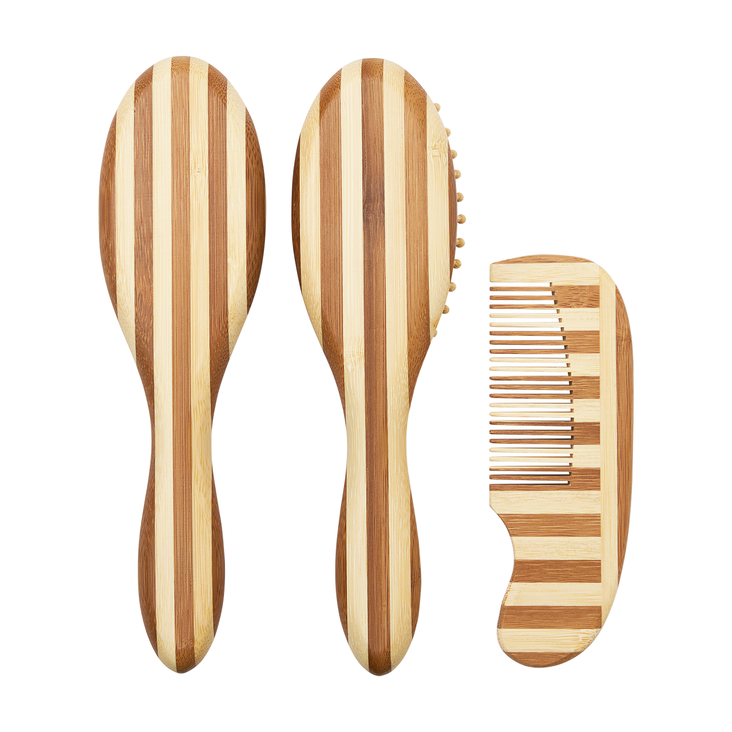 - 3-piece set: pin brush, goat hair brush, and wooden comb