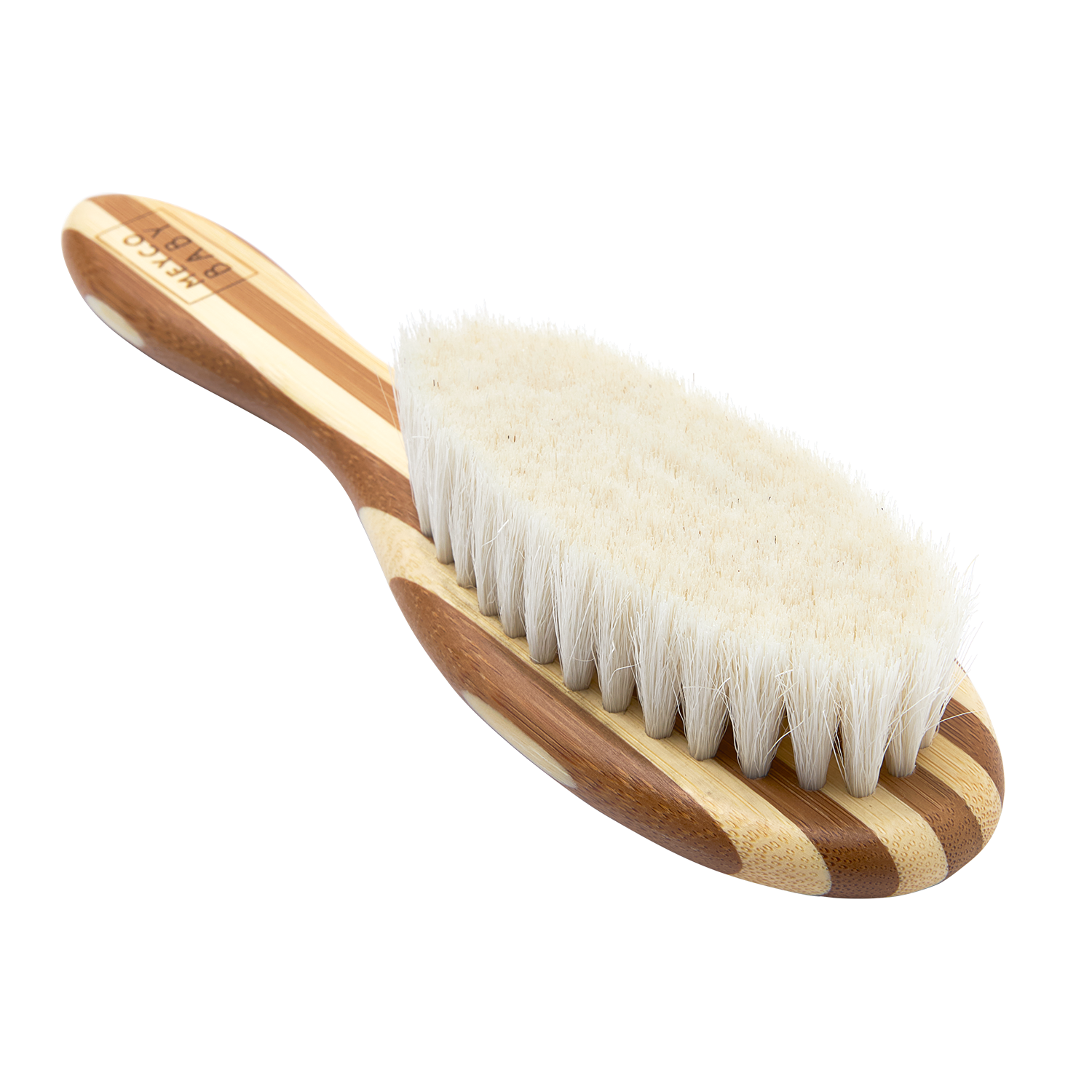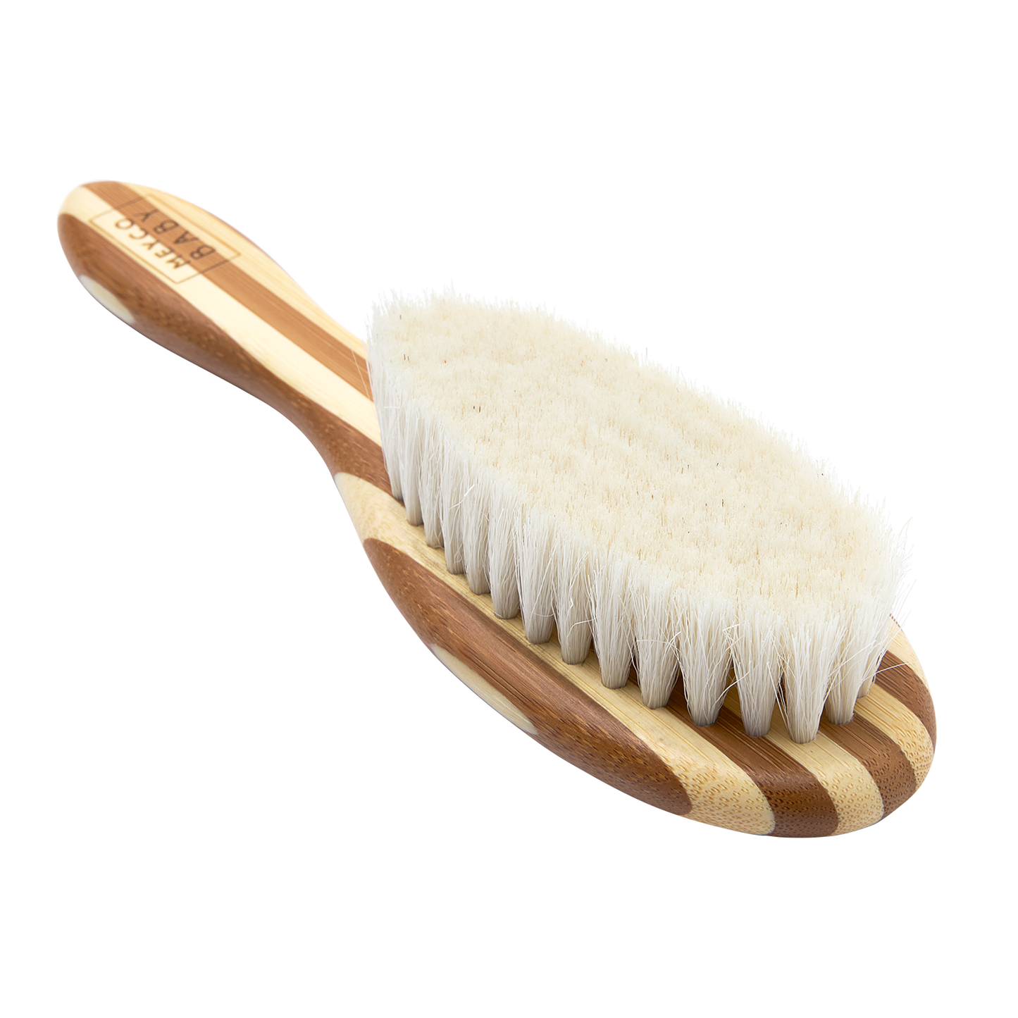 The brushes are specially designed for delicate baby hair and sensitive scalps. The goat hair brush is extra soft and ideal for daily use, while the pin brush gently detangles the hair. The wooden comb fits comfortably in your hand and helps to gently loosen small tangles. Thanks to the sustainable materials, the brushes are also eco-friendly.