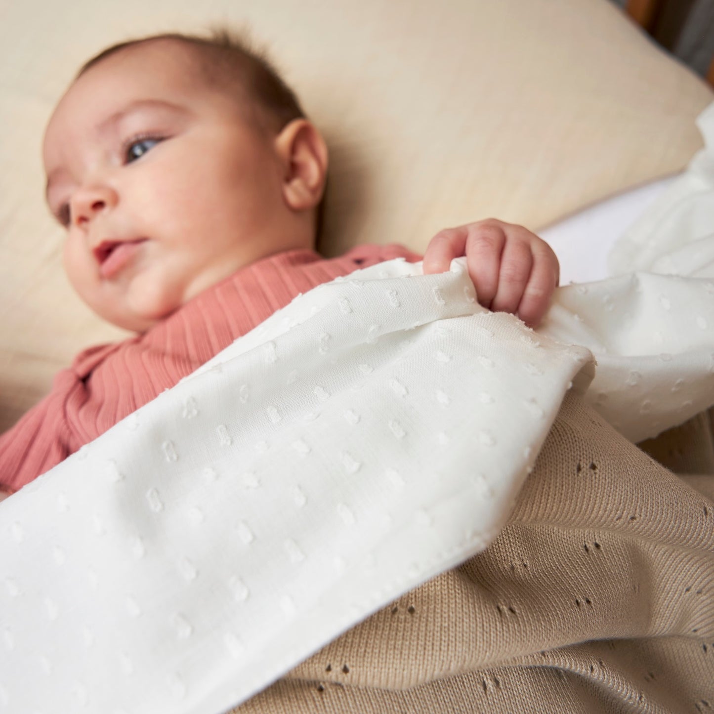 The bedsheet is available in different colors and two sizes: a crib sheet measuring 75x100 cm for use in the crib and stroller, and a sheet measuring 100x150 cm for use in the cot. Use the sheet in combination with a blanket. This way, you don't have to wash the blanket as often. The sheet has a TOG value of 0.3. The higher the TOG value, the warmer the product for your little one.