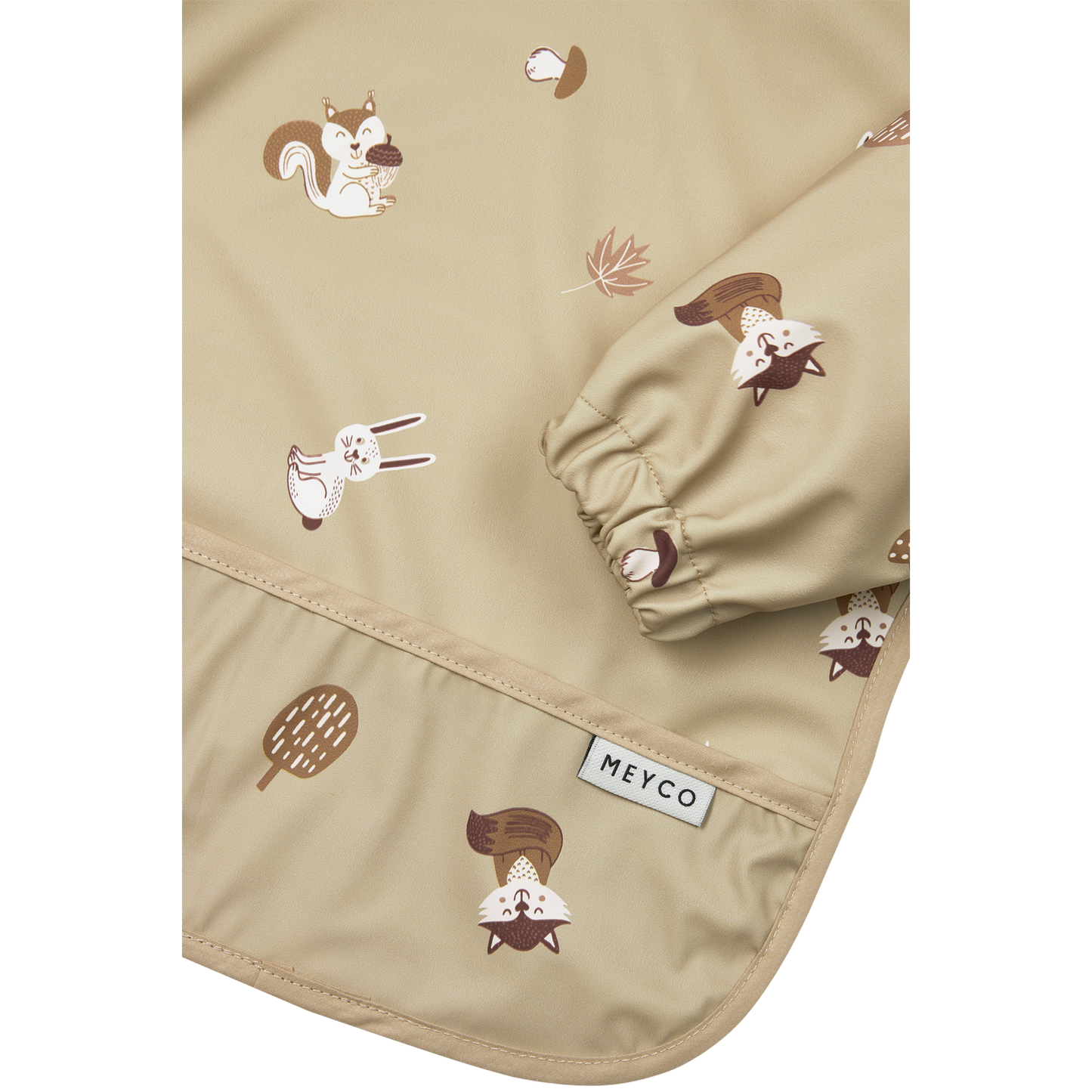 Dirty clothes while eating, crafting and playing? No more of that with the super handy Meyco Baby sleeve bib! This multifunctional bib is the ideal protection for your little eater, artist or when he or she is playing (outside). The bib is made of waterproof material, so stains and dirt come off easily. At the bottom there is a double layer of fabric, so food leftovers are neatly collected. Your little one stays nice and clean and dry and can enjoy meals or creative moments.