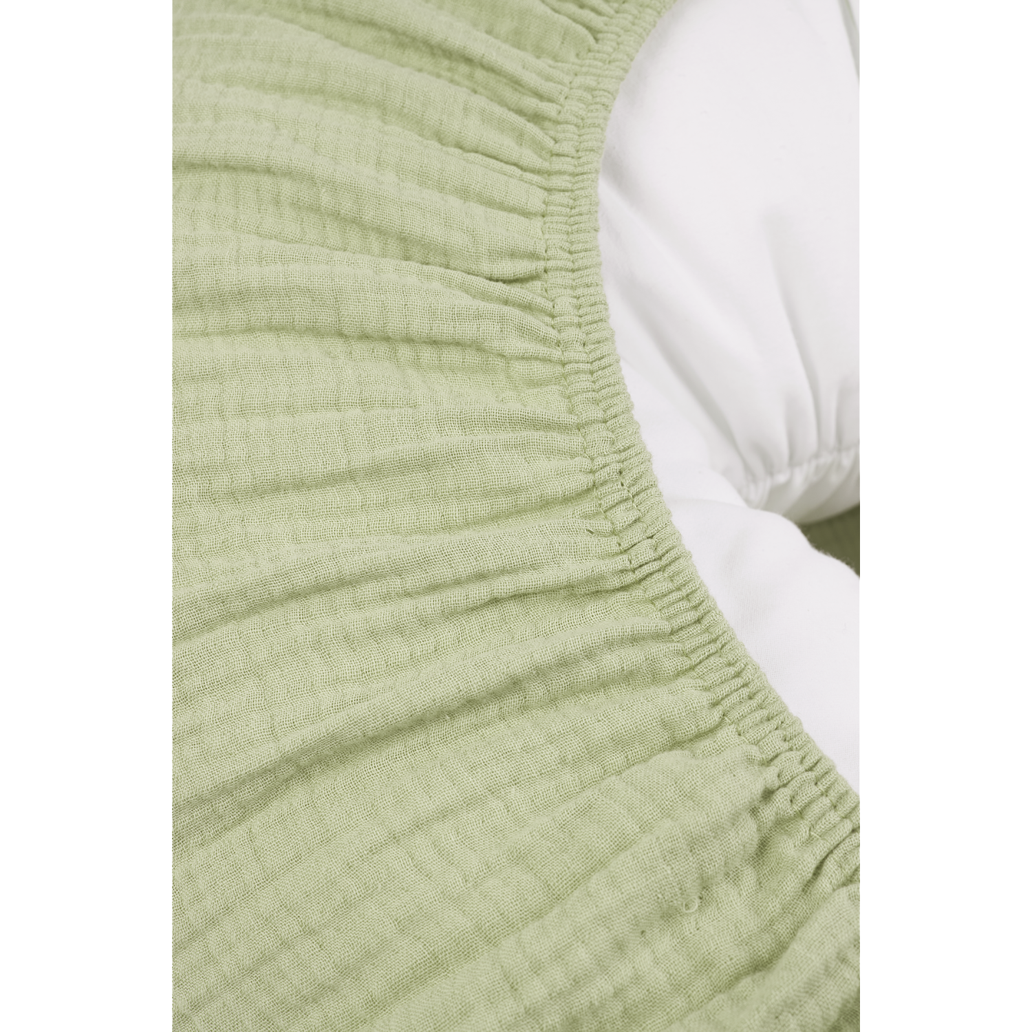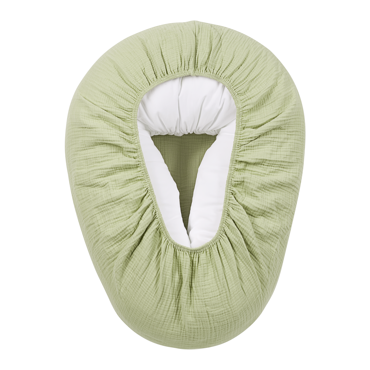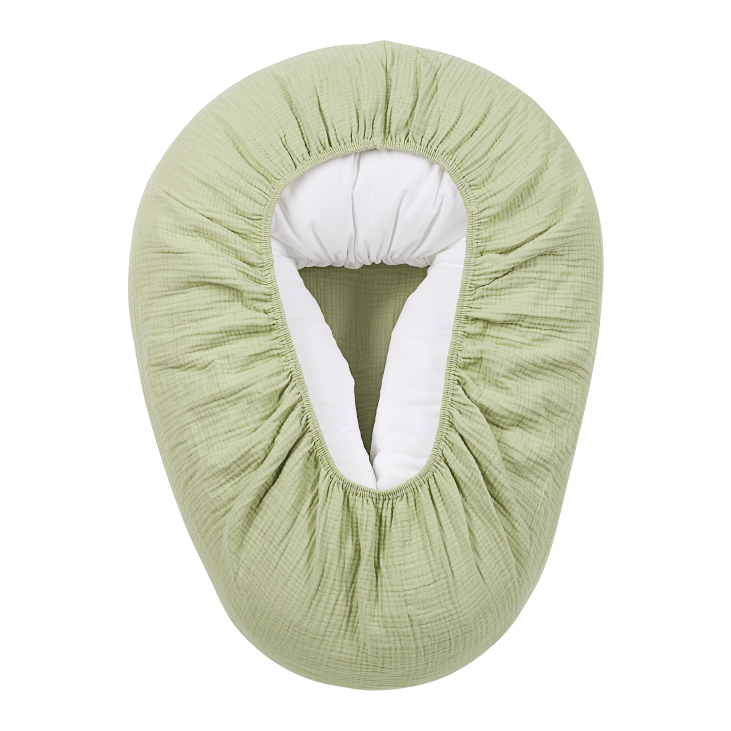 The cover is made of soft, pre-washed muslin fabric. Thanks to the elastic band at the bottom, you can quickly put this cover around your nursing pillow. Had an accident? No problem! Simply take it off and wash it.