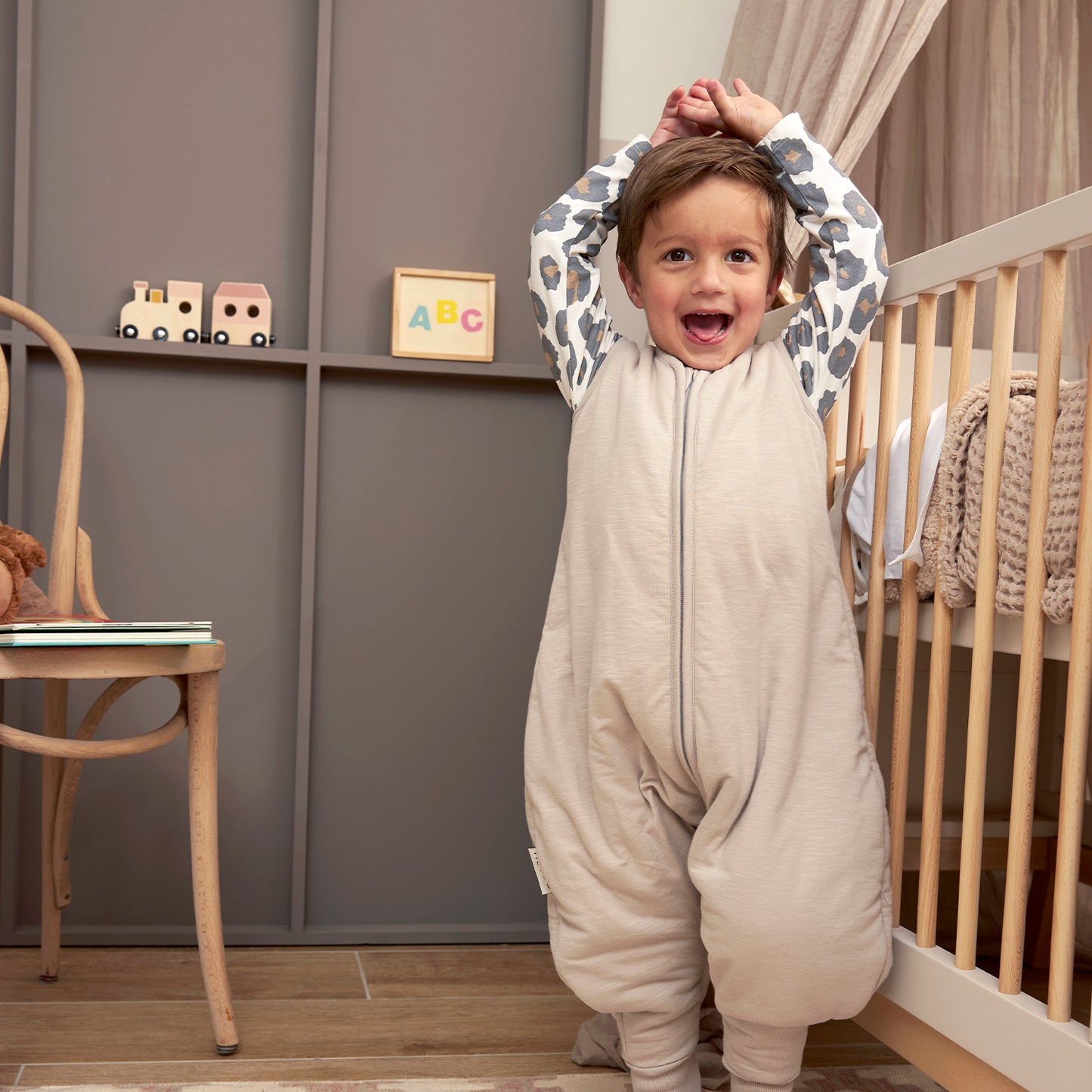 In this jumper sleeping bag, your little one's legs are each in their own pipe, giving him or her plenty of freedom of movement. Very handy and safe once your child starts walking or standing up. Also, this jumper is available in different sizes, colours and designs so you can always find one that suits your style.
