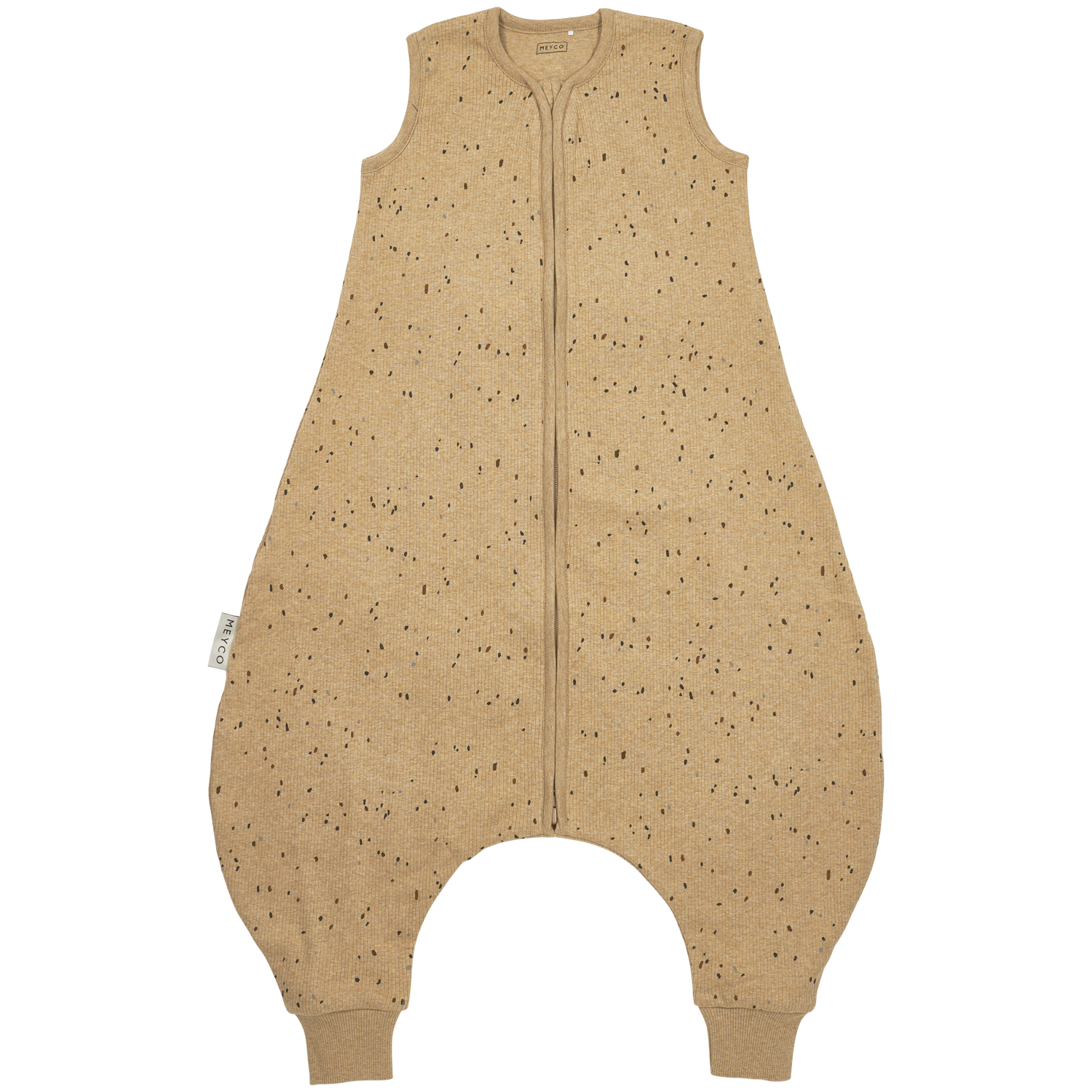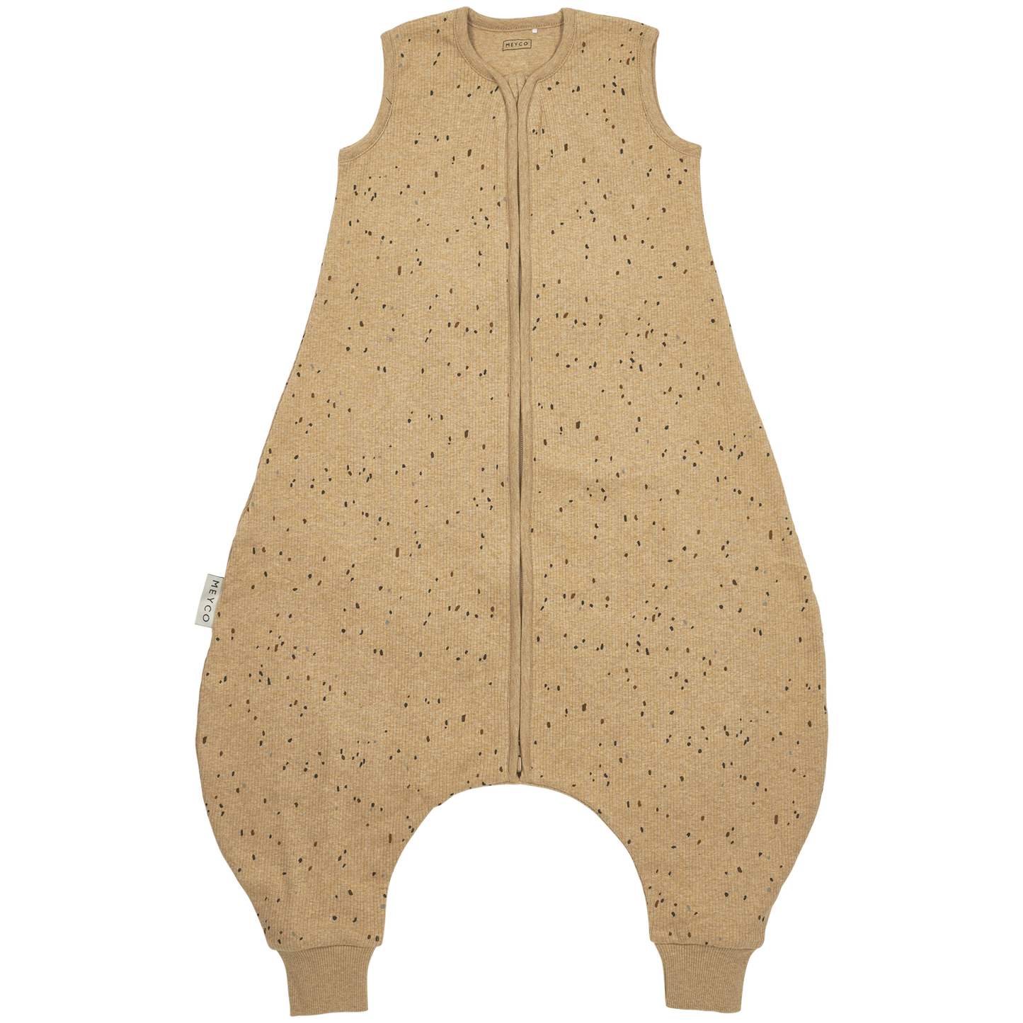 Are you looking for a sleeping bag that gives your little one a familiar feeling but still allows them the freedom to walk around and explore the world? Then the Meyco Baby sleep overall jumper is perfect for you! This comfortable and versatile jumper ensures that your little one can sleep peacefully and move freely. The trendy rib fabric adds a fun twist, and the fabric is wonderfully soft and stretchy. The jumper is available in various melange colors and features the Mini Spot print. The print is minimalist, but it gives the sleep overall a very chic look, and you can easily combine it with your entire baby equipment.