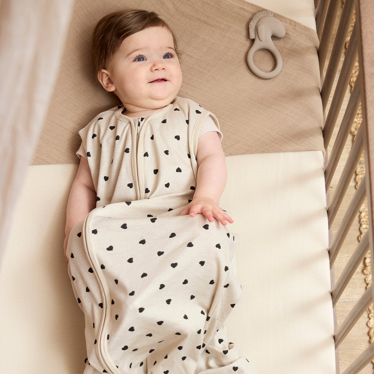 All our sleeping bags have been thoroughly tested and meet the European safety standard EN 16781. The YKK zipper along the full length also meets the European standard and closes from top to bottom, with the pull tab ending at the bottom. This prevents your child from pulling the zipper down themselves and ensures the neck opening always fits well. This way, your baby cannot slip down in the sleeping bag, keeping the sleeping environment safe and comfortable. Additionally, the pull tab stays away from your child’s head, providing extra safety during sleep.