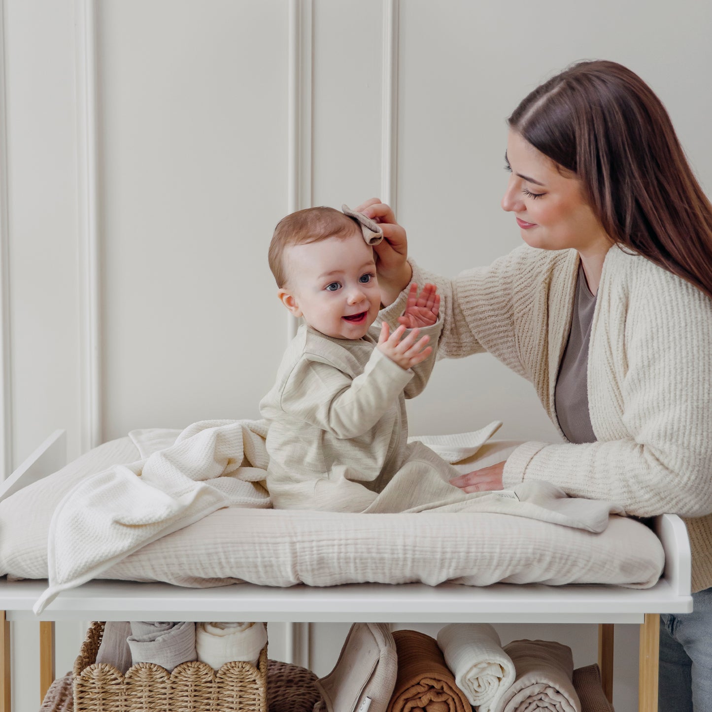 Merino wool is a true natural wonder. Its fine fibers are highly breathable, wick away moisture, and keep your baby warm in cold weather – and cool when it’s warmer. Perfect for year-round use.