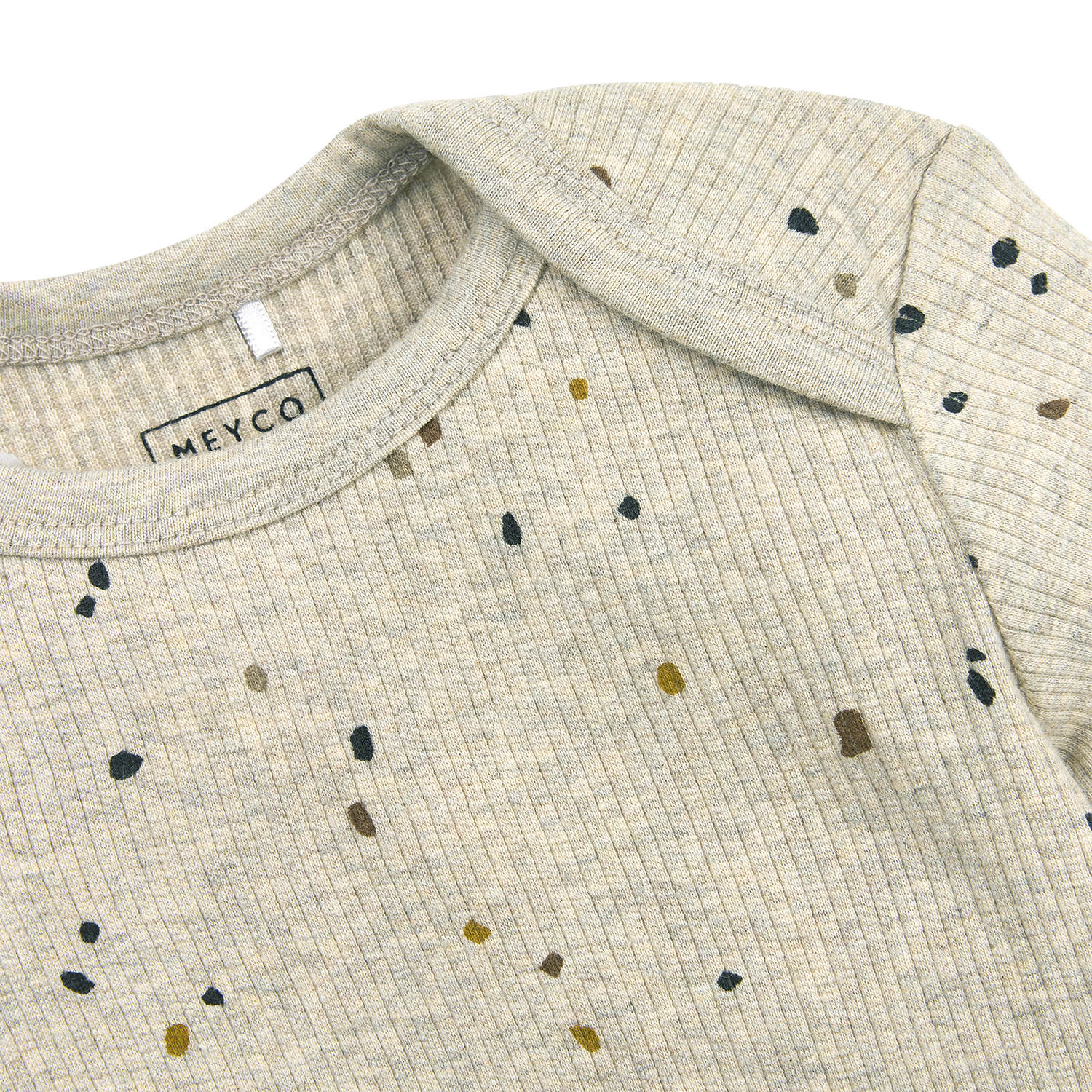 Wil je de look compleet maken? Bekijk dan de complete Meyco Baby Rib collectie. De items uit deze collectie zijn gemaakt van een fijne geribbelde stof en daardoor hebben ze een speelse maar t?ch luxe uitstraling. De collectie bestaat uit slaapzakken, jumpers, aankleedkussenhoezen, slabben, bandana?s en boxkleden. De Rib collectie is doorgevoerd in verschillende naturel melange kleuren, waardoor je het makkelijk kunt combineren met andere Meyco Baby items.