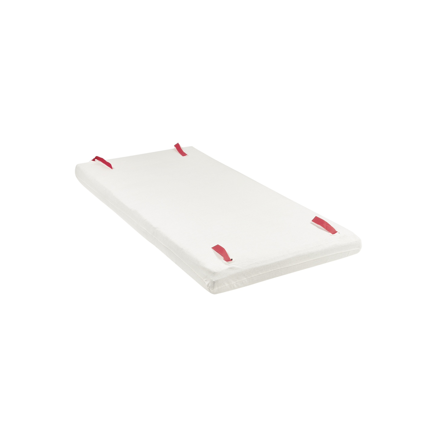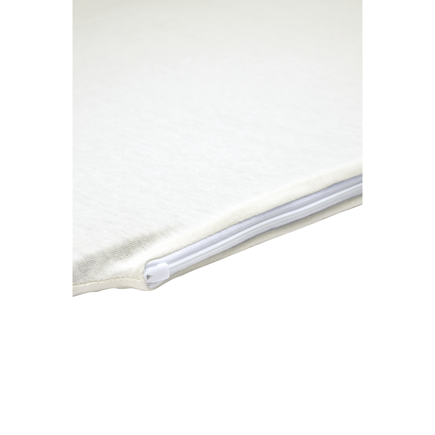 De matrashoes is gemaakt van 100% jersey katoen. Daardoor is de stof goed rekbaar, ademt het goed en voelt heerlijk zacht en comfortabel aan. Ook heeft de onderkant van deze hoes vier gaten waardoor de linten van het matrasje door de hoes heen kunnen en op die manier het matras veilig aan de bodem kan worden bevestigd. Hierdoor kan je kindje niet tussen het matrasje en de bodem terecht komen en daardoor extra veilig.