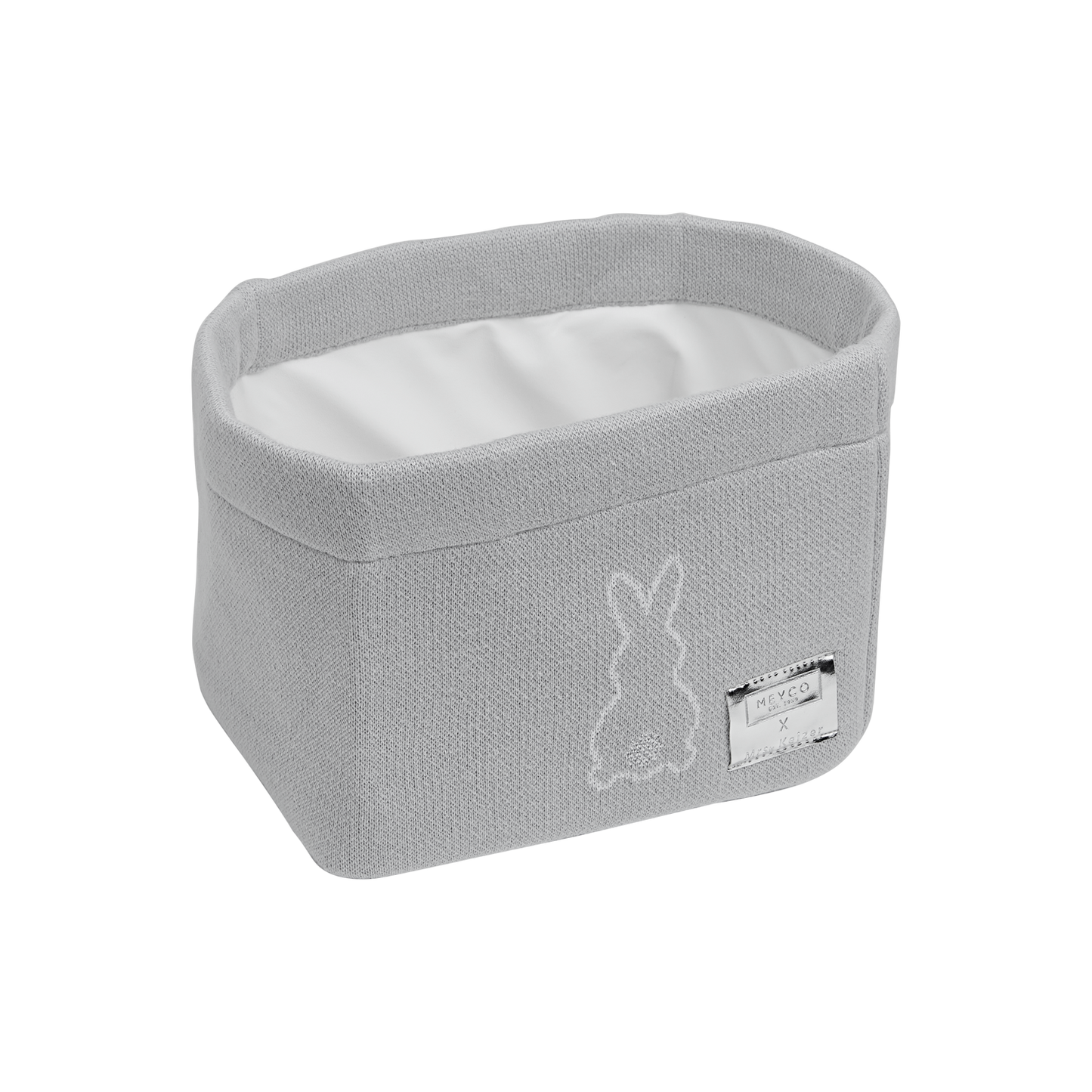 De commodemand is verkrijgbaar in diverse kleuren en in een small en medium variant met de afmetingen: small 21x16xh16 cm en medium 26x19xh16 cm. De binnenkant is afneembaar met een vochtige doek. Dus mocht er een flesje of potje lekken dan is er niets aan de hand en maak je het zo weer schoon. Mix en match het mandje met de rest van de Meyco X Mrs. Keizer Rabbit collectie en creëer een complete look in de babyslaapkamer.
