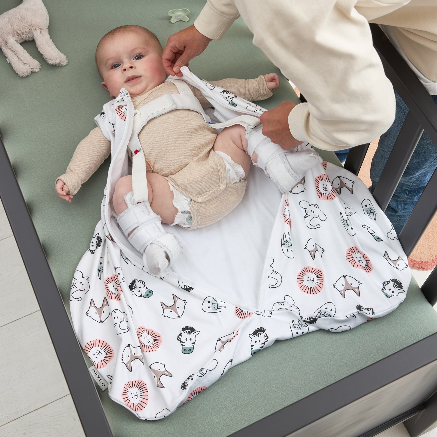 Deze handige slaapzak is speciaal ontworpen voor baby's die een spreidbroekje of gipsbroekje dragen. De onderkant van de slaapzak is extra ruim gemaakt voor de gespreide beentjes en heupen van je kleintje, zodat hij of zij comfortabel en veilig kan slapen.