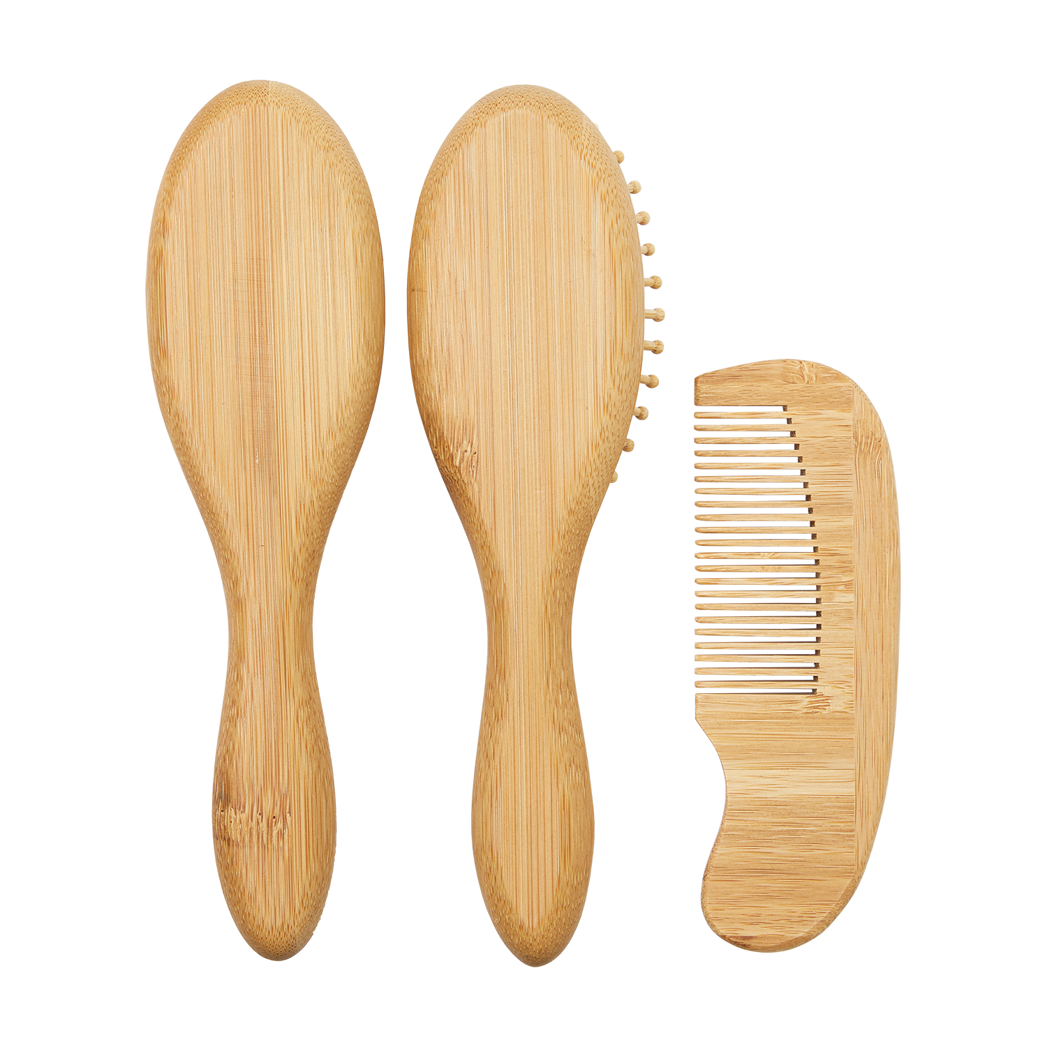- 3-delige set: borstel met pinnen, borstel met geitenhaar en houten kam