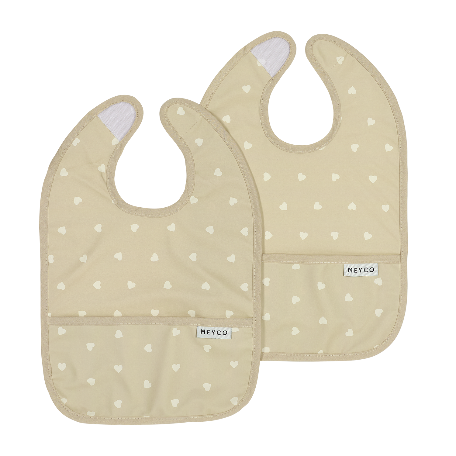 Onze waterdichte slabben komen in een handige 2-pack, zodat je altijd een schone hebt als de andere in de was zit. Dankzij de handige klittenbandsluiting maak je ze in een handomdraai open en dicht. Ideaal, toch? En het opvangbakje is echt een uitkomst, want zo worden etenrestjes opgevangen en blijven de kleertjes veel schoner.