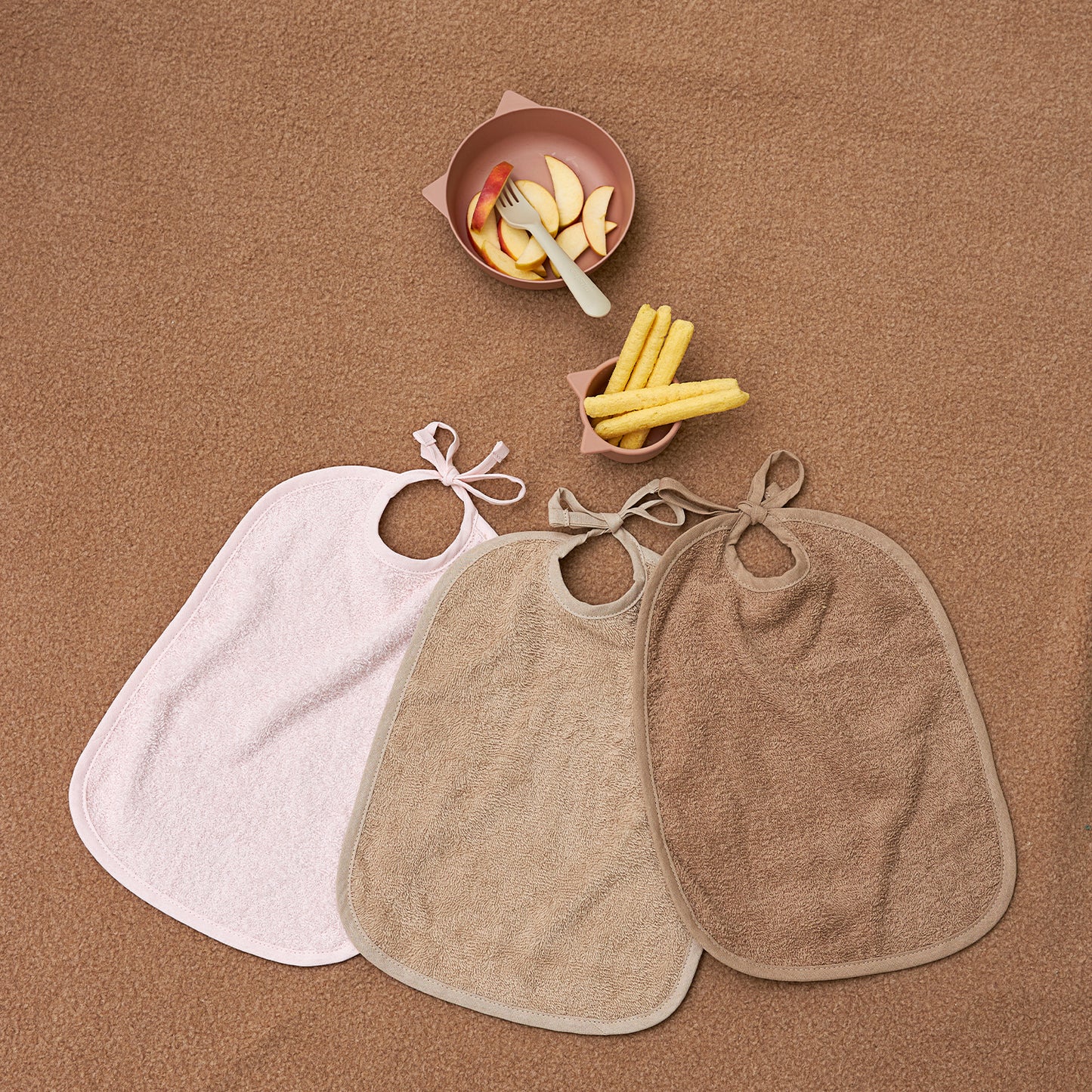 De slab is gemaakt van 100% katoenen badstof, hierdoor neemt deze vocht goed op én is de slab sneldrogend. Je strikt de slab aan de achterzijde met de koordjes, zodat hij voor iedere leeftijd past.