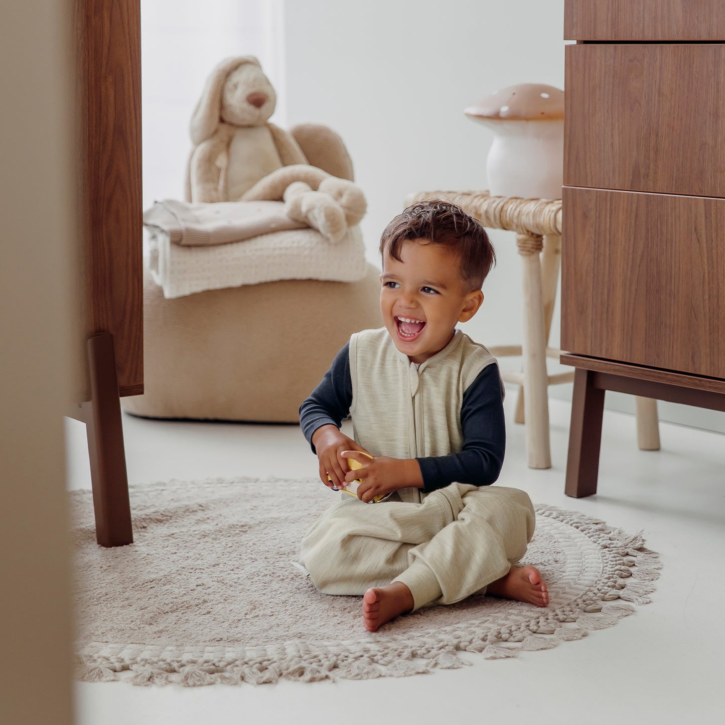 Merinowol is een echt natuurwonder. Dankzij de vezels ademt het goed, voert het vocht af en houdt het je kindje warm als het koud is en juist koel als het wat warmer is. Ideaal voor het hele jaar door.