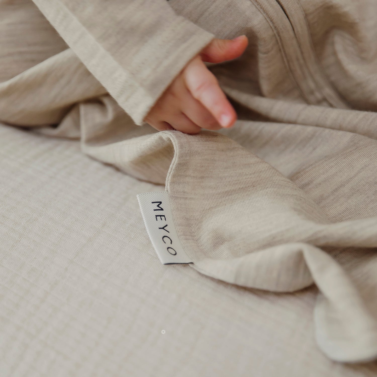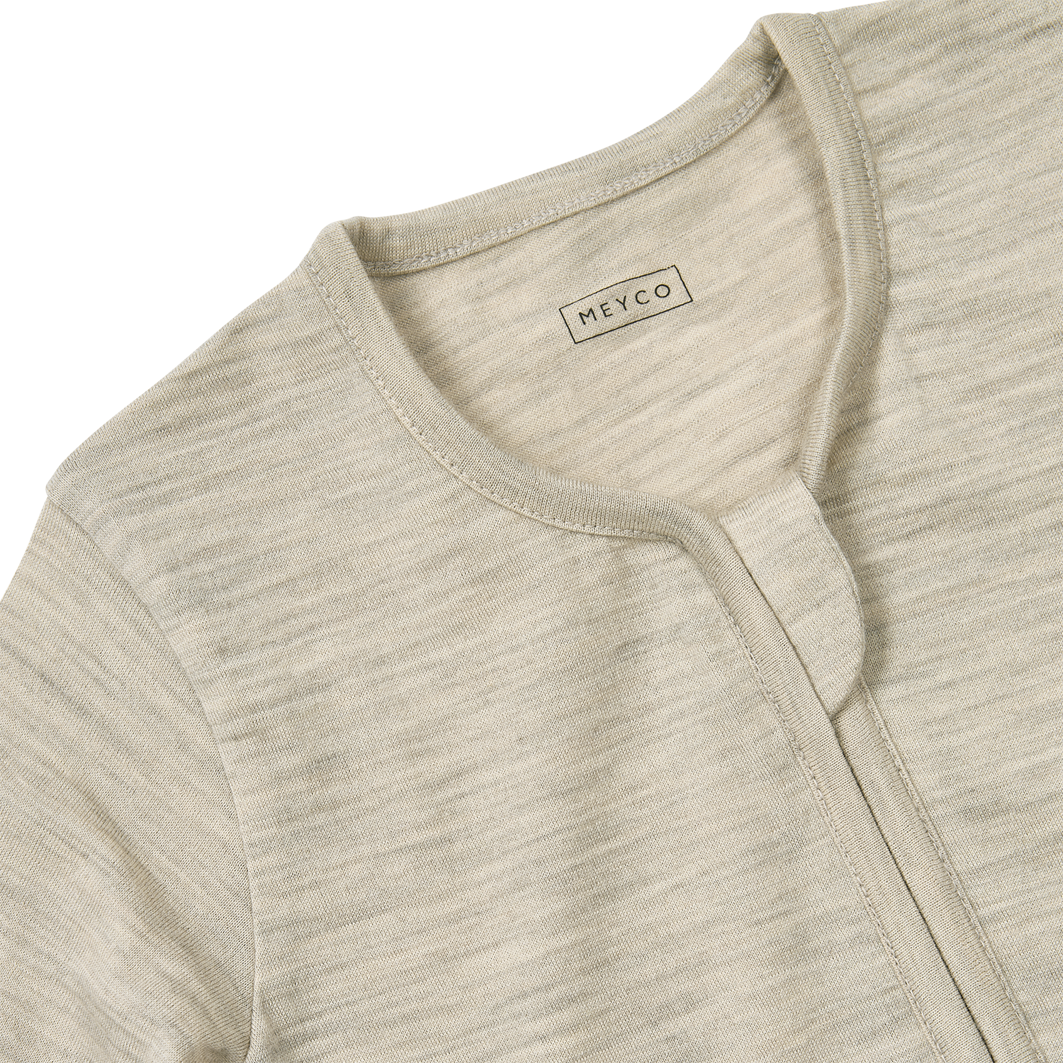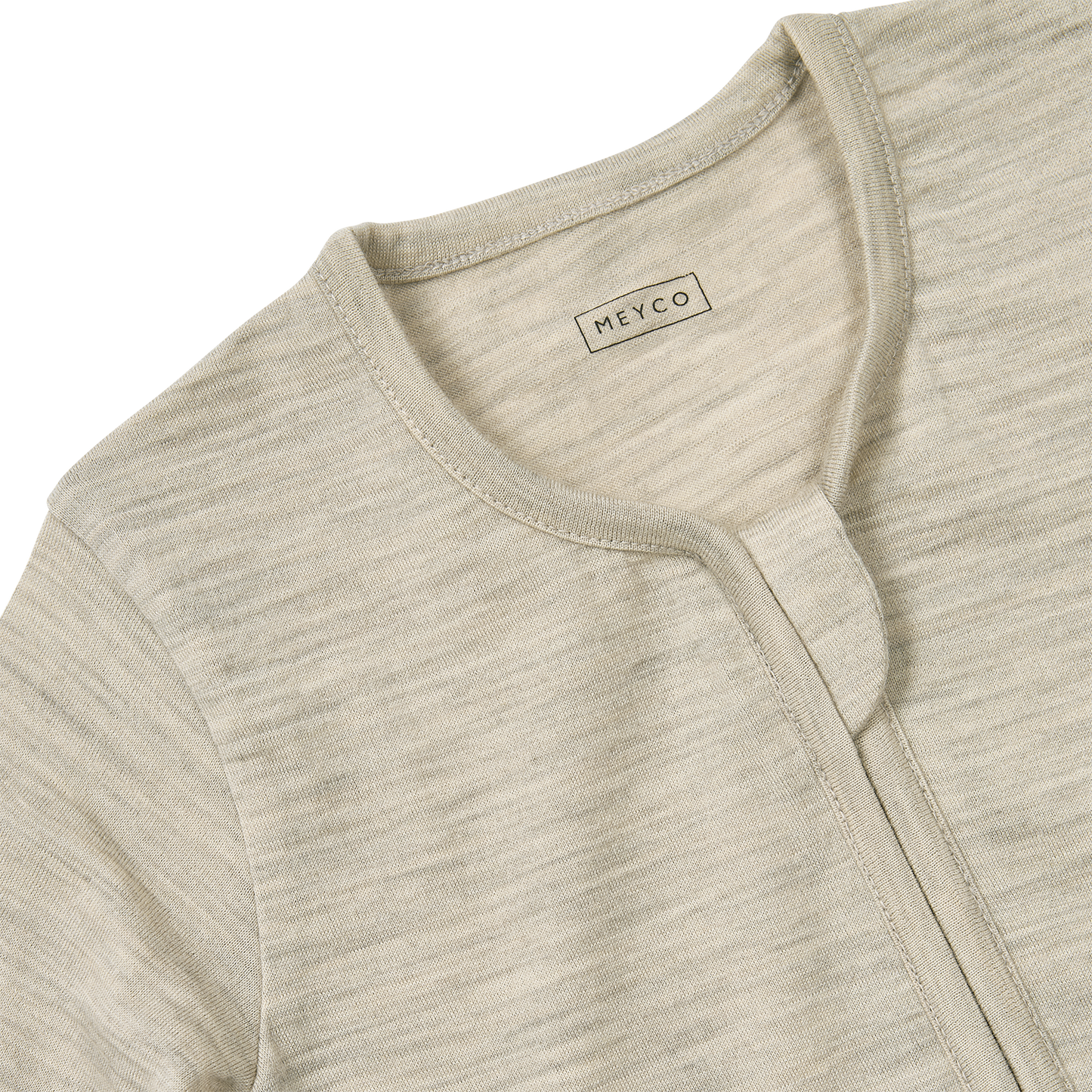 De Meyco Baby Studio slaapzak in merinowol is een echte must-have voor wie houdt van natuurlijke materialen en een rustige, stijlvolle look. Gemaakt van 100% merinowol met een binnenzijde van 100% katoen, voelt deze slaapzak superzacht aan en reguleert hij de temperatuur van je kleintje op een natuurlijke manier. Niet te warm, niet te koud – precies goed.